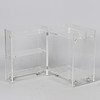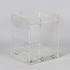Roller table made of acry l/ plexiglass with door arranged with shelves and top plate with hinged flap circa 1980-90.