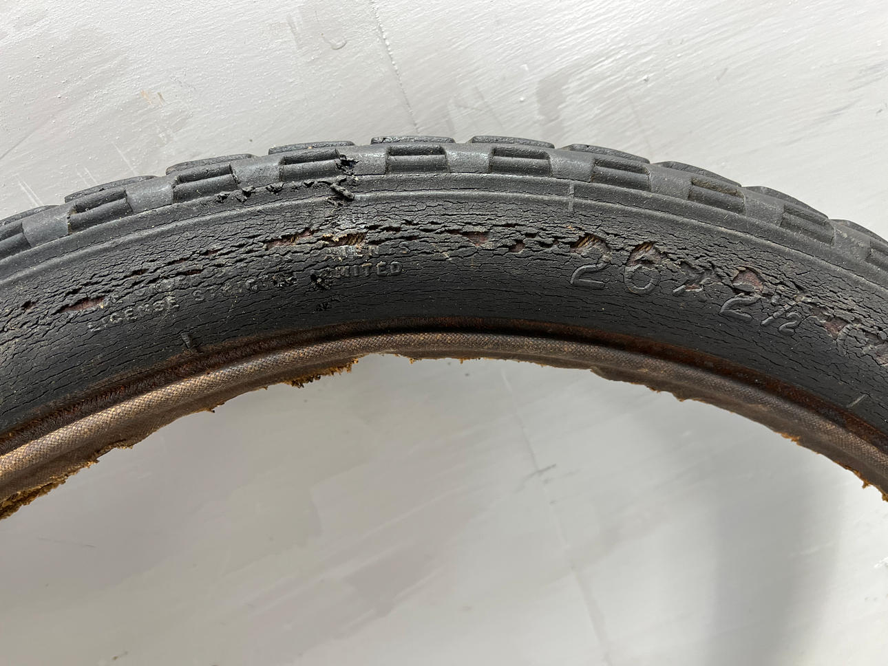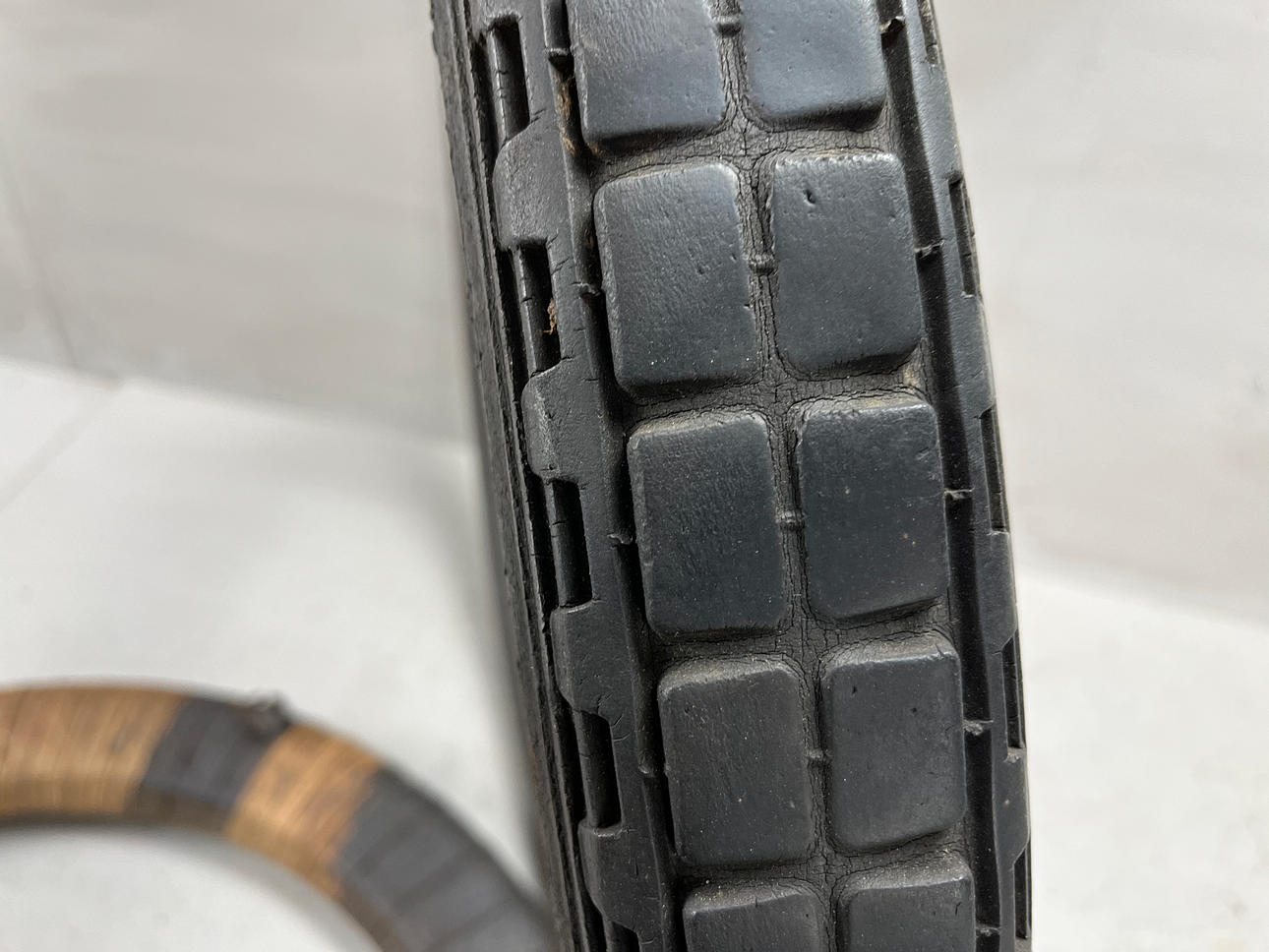 A tire NOS wrapped in original packaging.