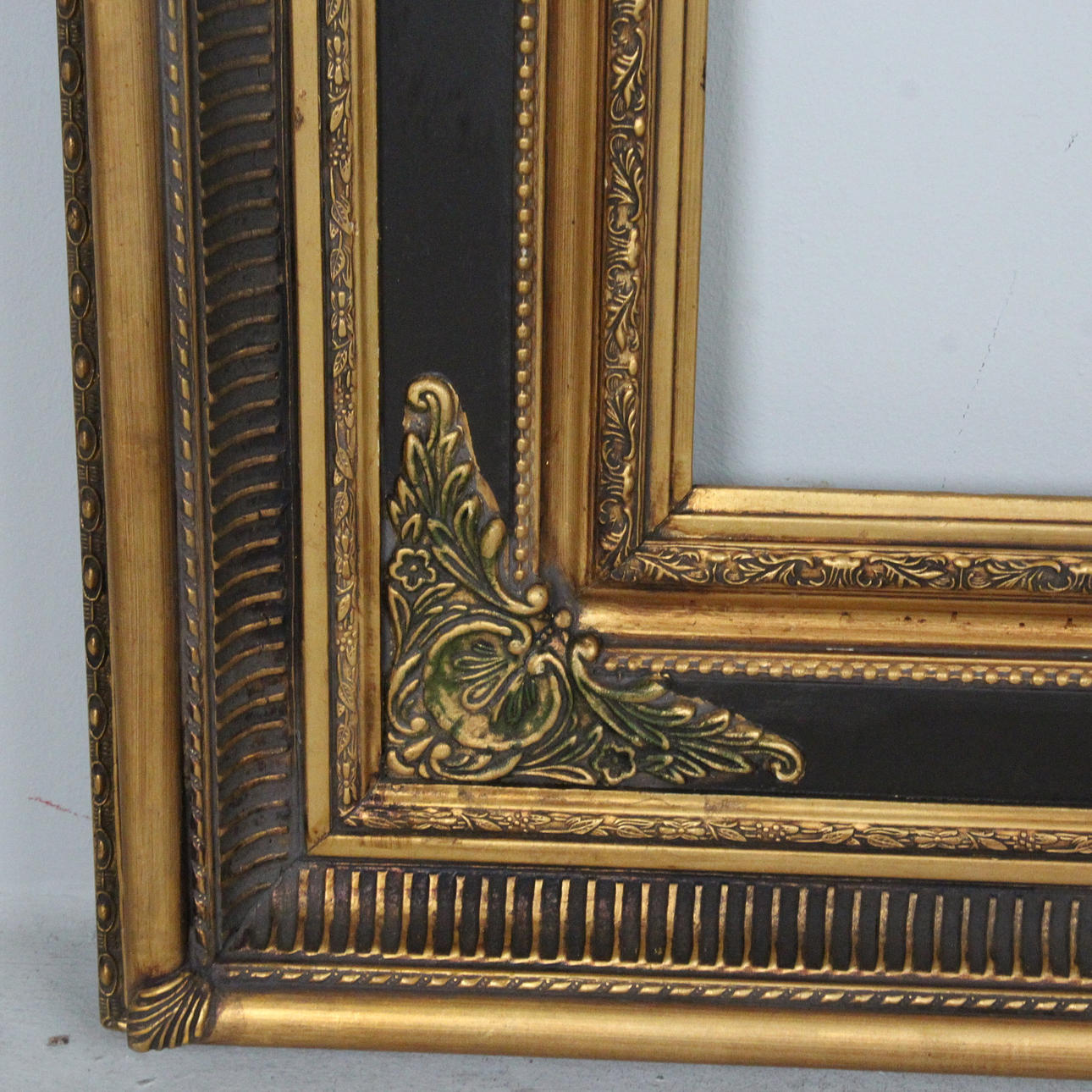 Frame/picture frame made of wood, decorated with stucco, painted black and gold, Dimensions (outer): 96.5 x 106.5 cm.
