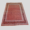 Oriental rug with polychrome decor of flowers against red background. Approx. 390 x 274 cm.