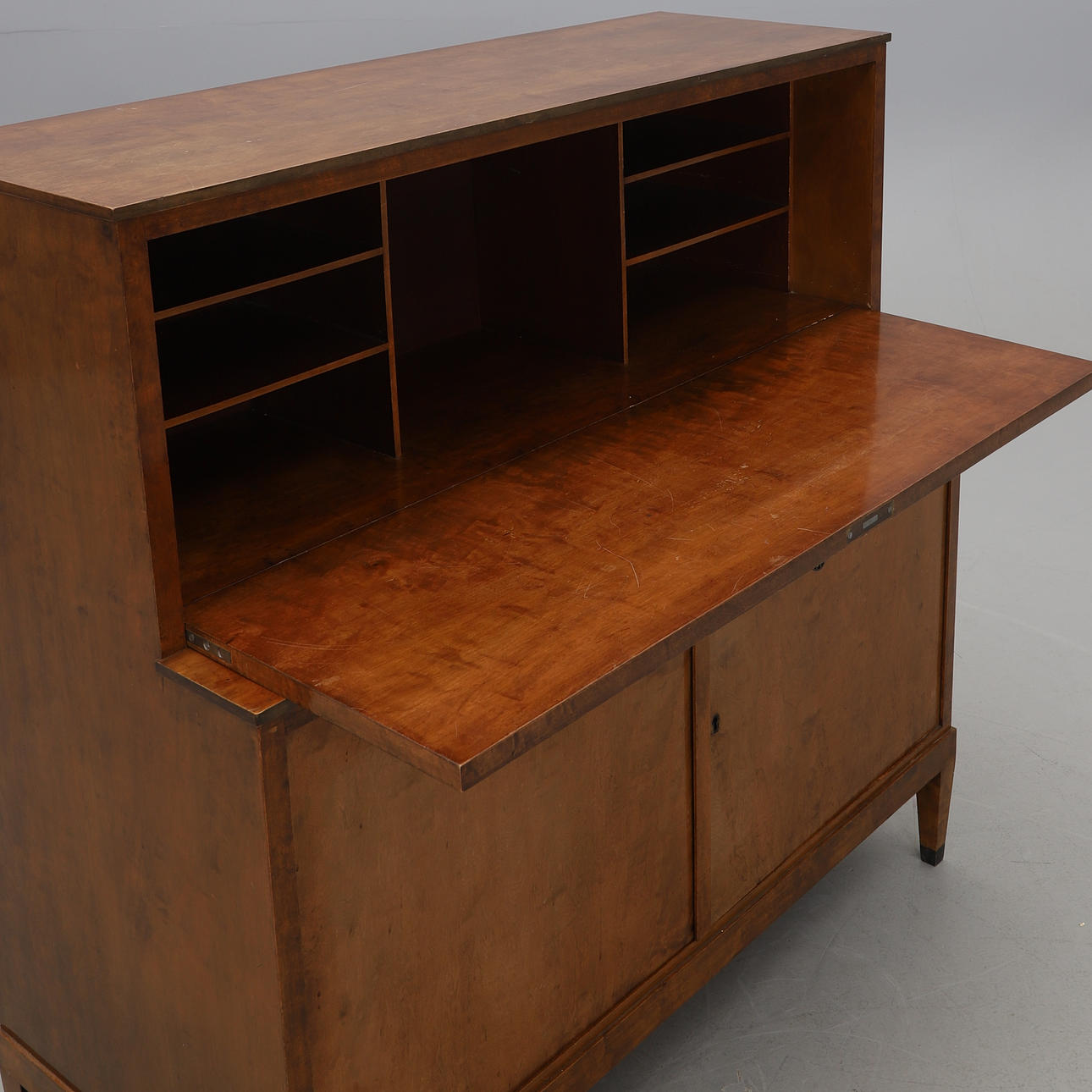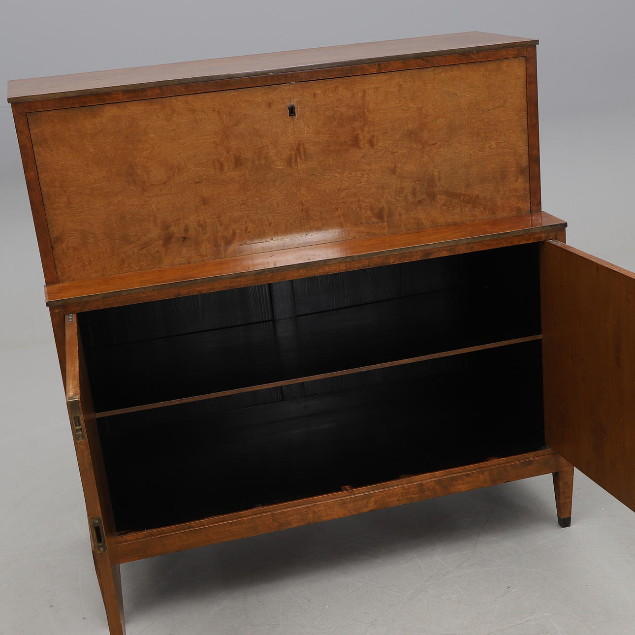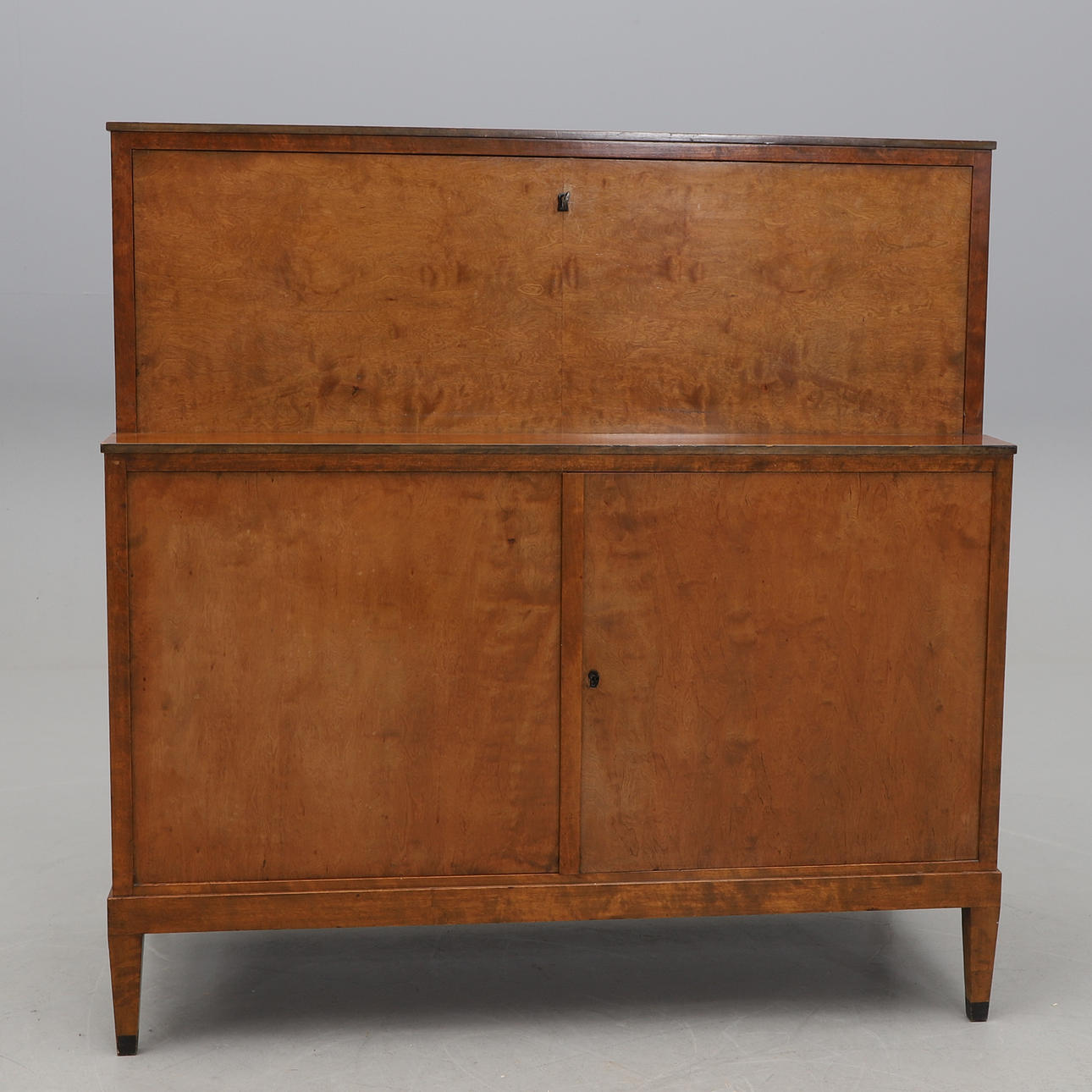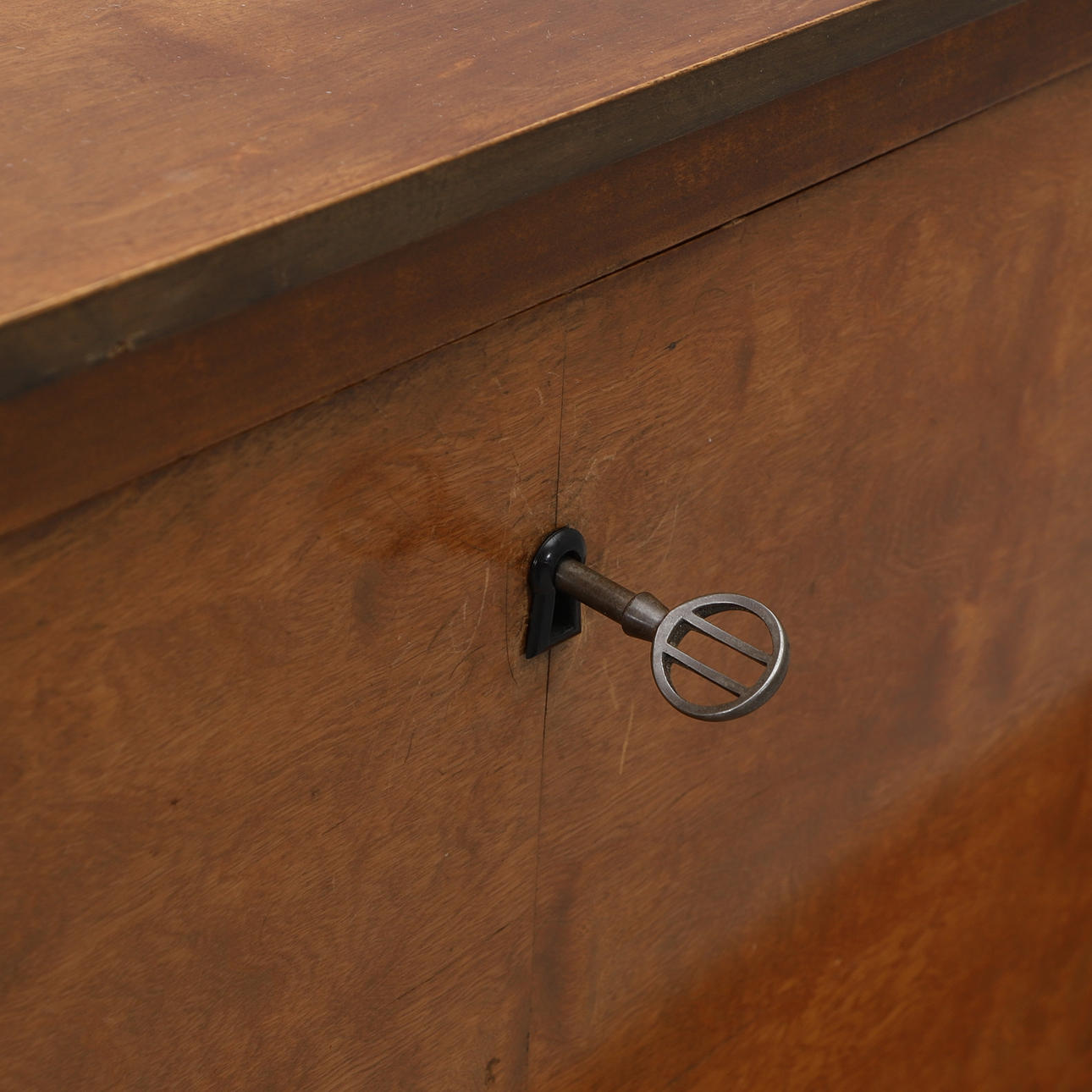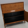 Bonded birch. Flap door and double door with rear shelf interior. Width 113, depth 50, height 115 cm.