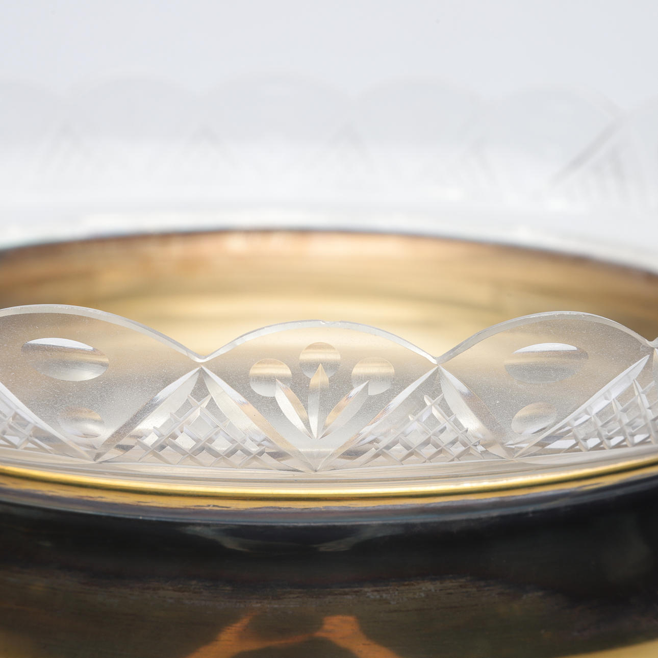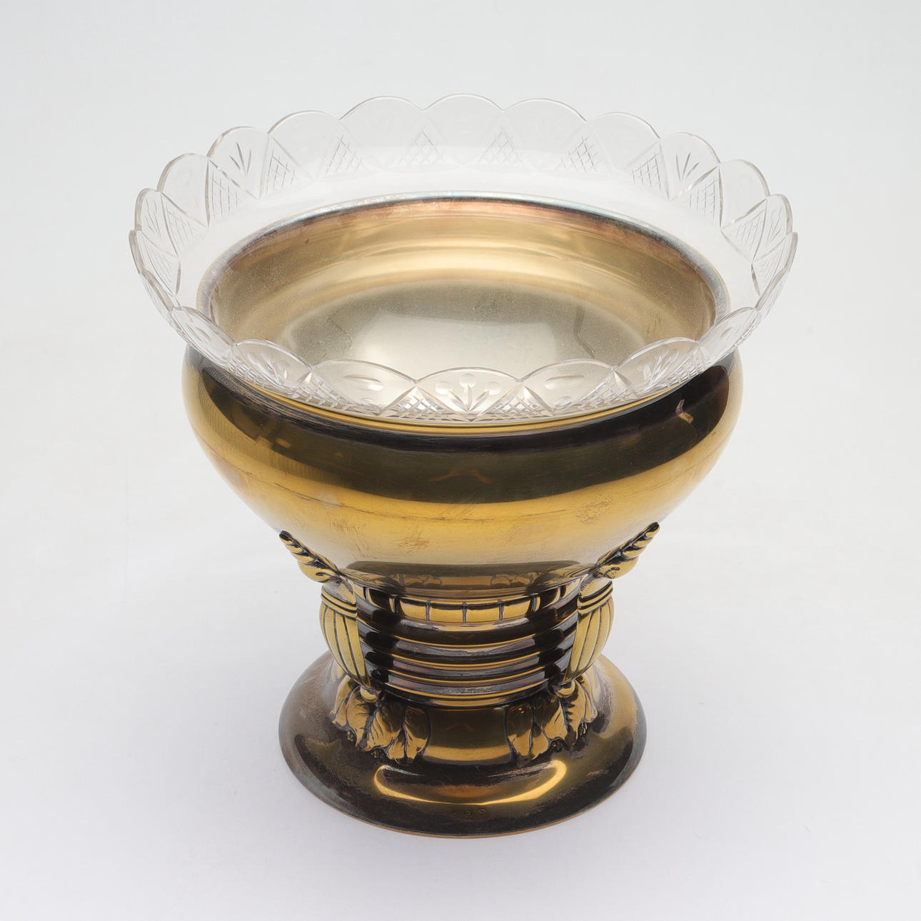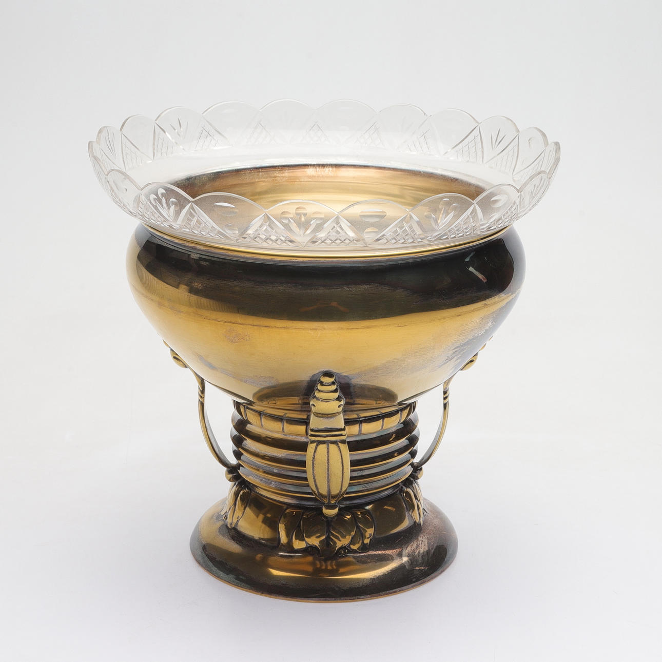 Loose glass insert bowl with sanded decor. Diameter approx. 27, height 25 cm.
