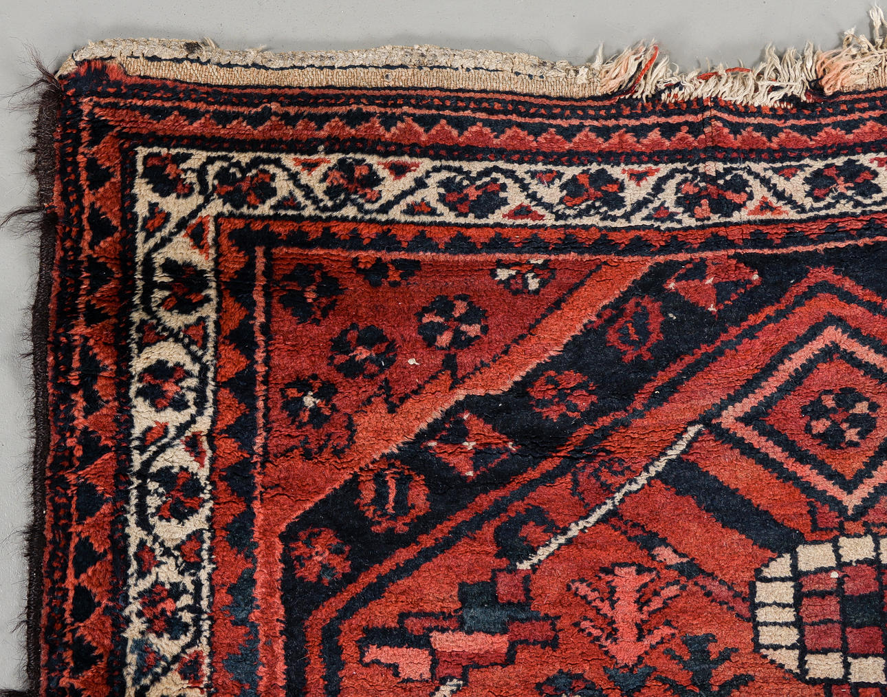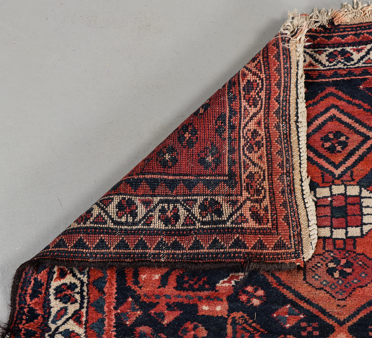 Hand knotted, wool on cotton warp, 200x120 cm.