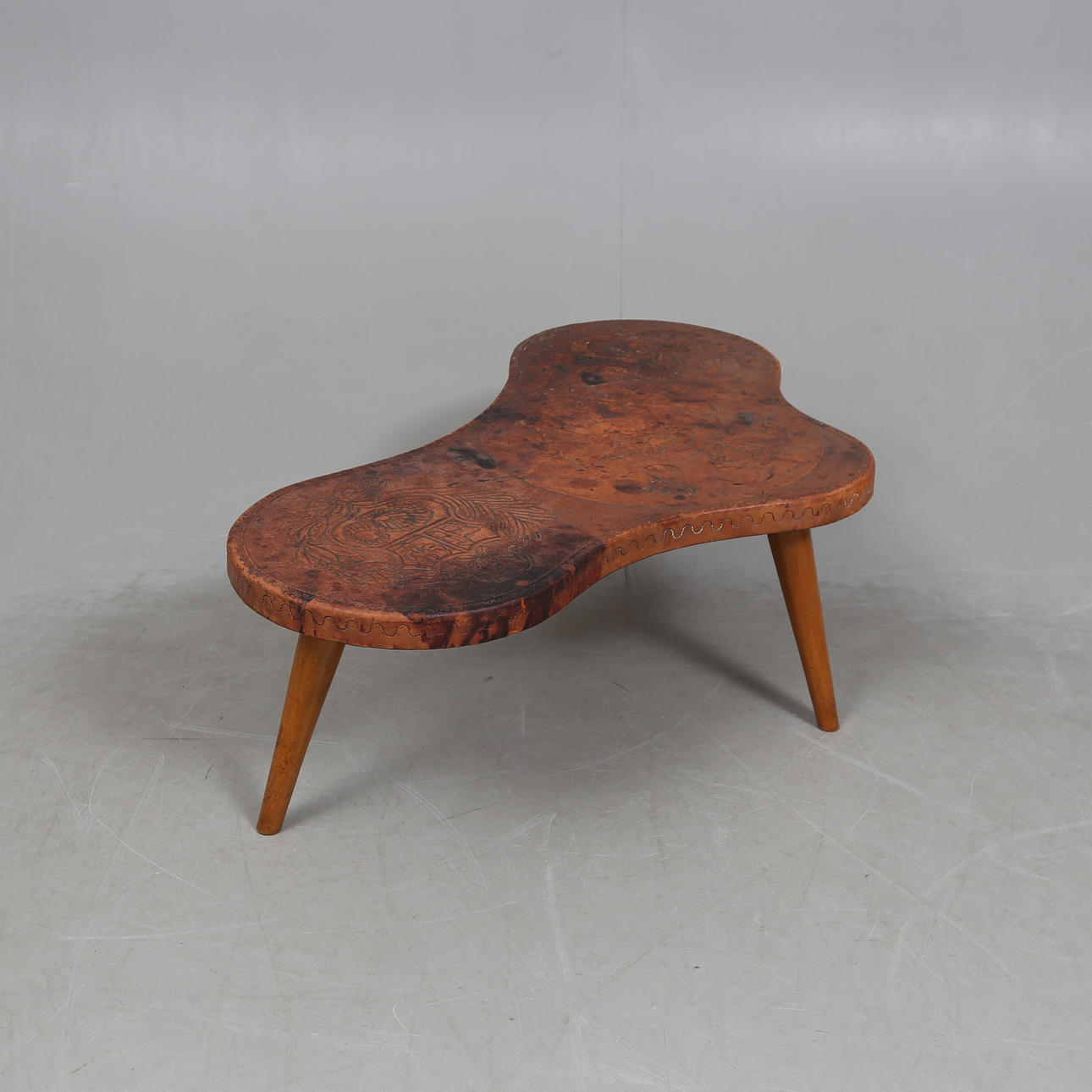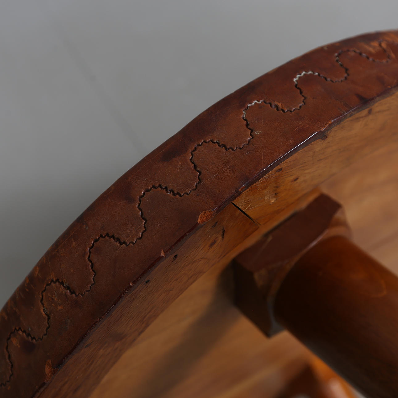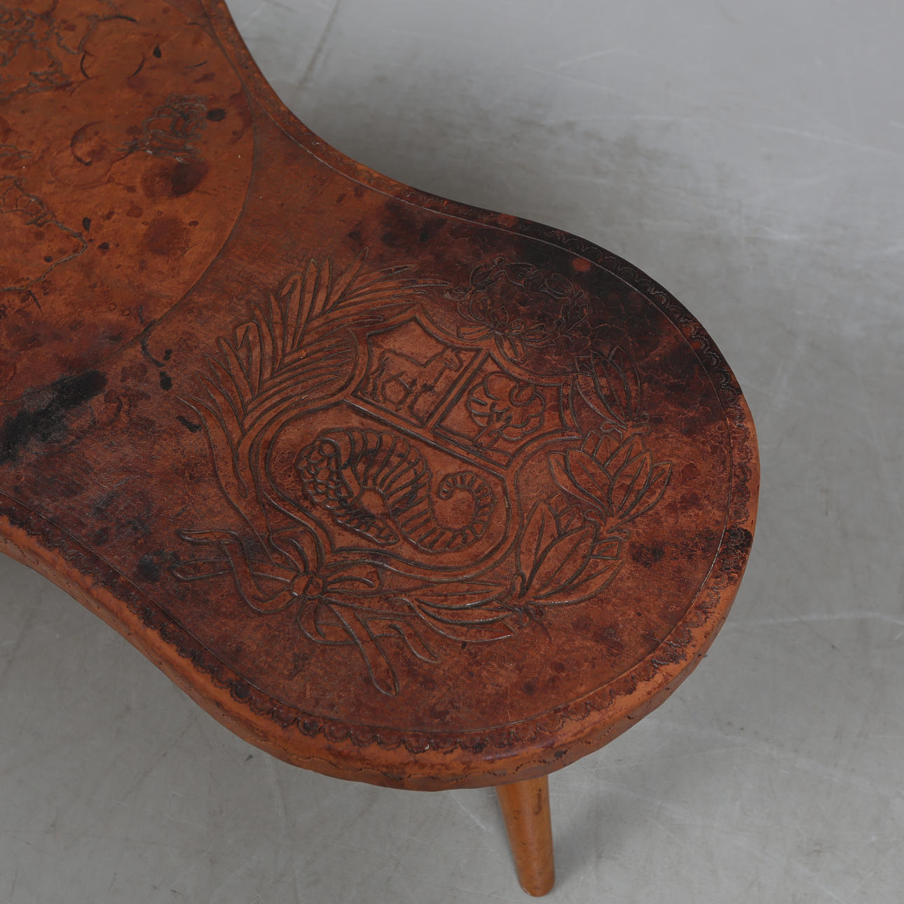 Leather-clad disc. Length approx. 125 cm. Height approx. 42 cm.
