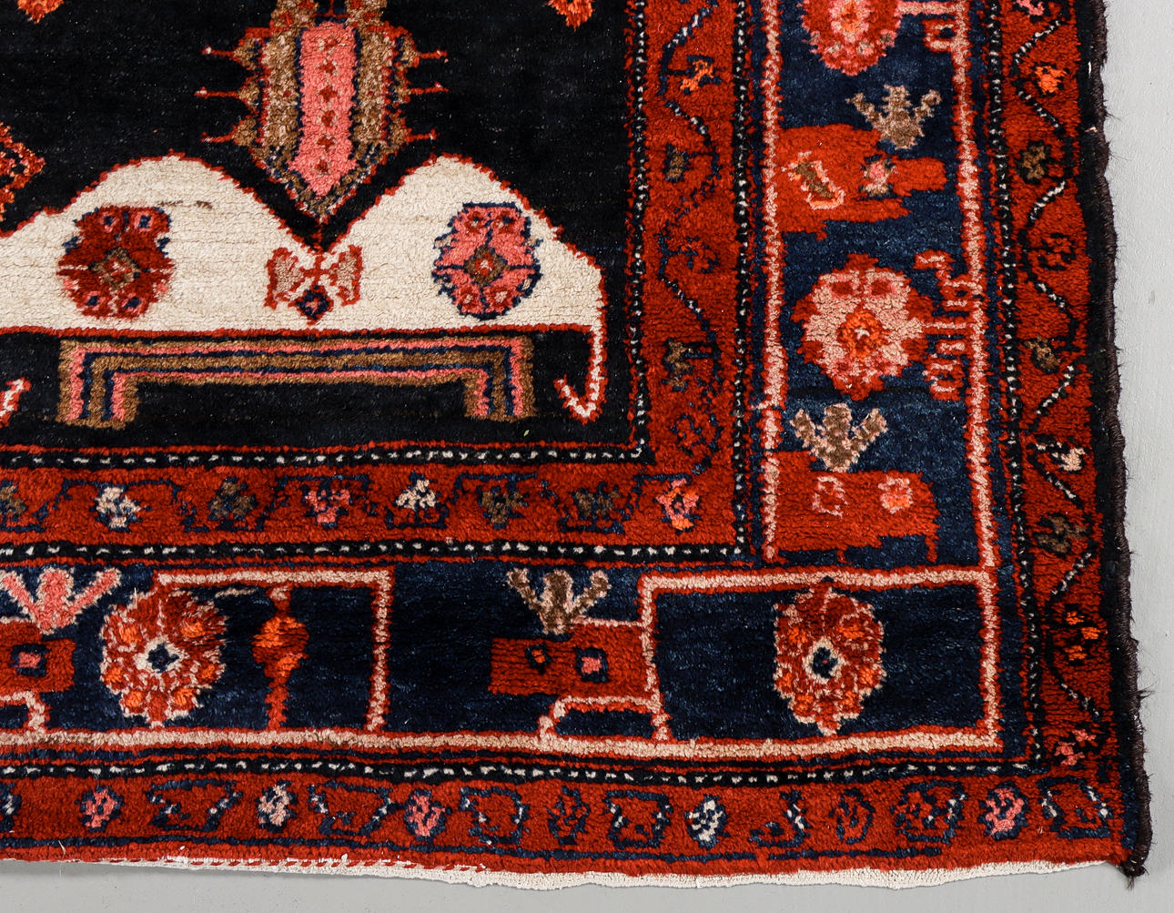 Handknotted, wool on cotton warp, 230x165 cm.