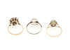TWO 9CT GOLD AND GEMSET RINGS AND A SILVER RING.