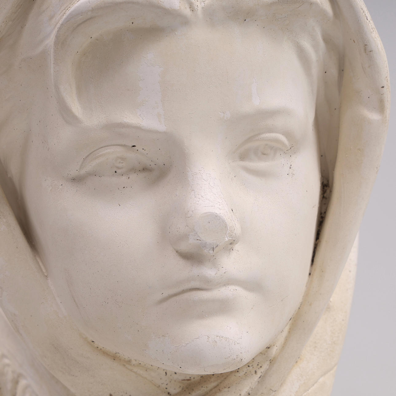 4353027. SCULPTURE. Plaster, girl with shawl.