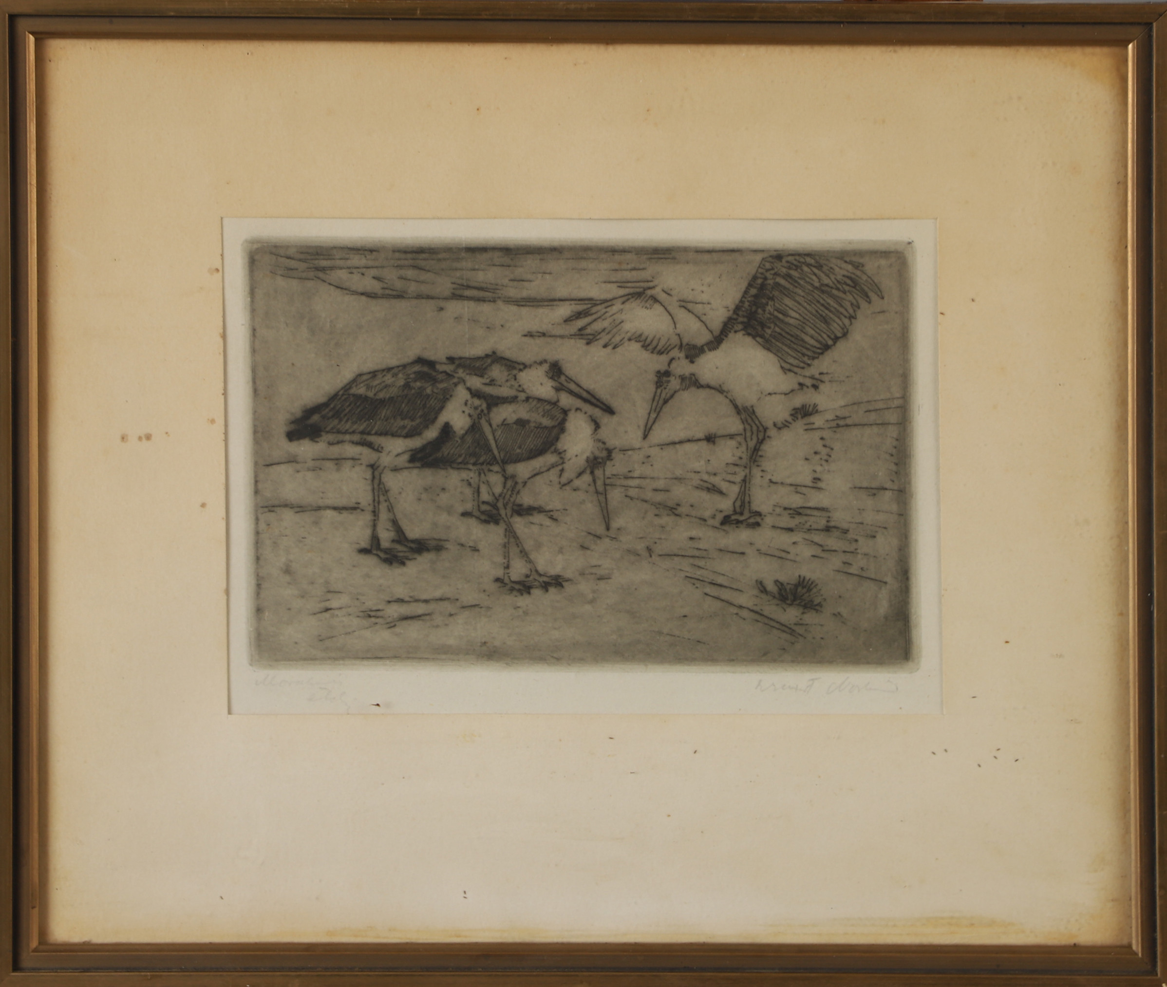4353097. ERNST NORLIND. Storks, etching, ss.