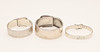 THREE SILVER BUCKLE BANGLES.