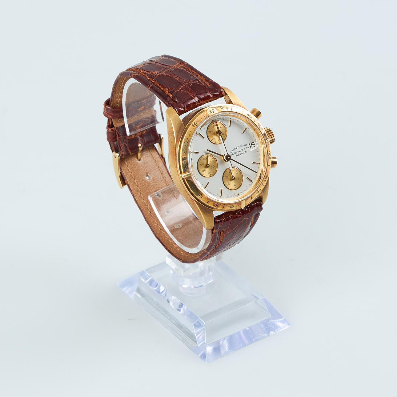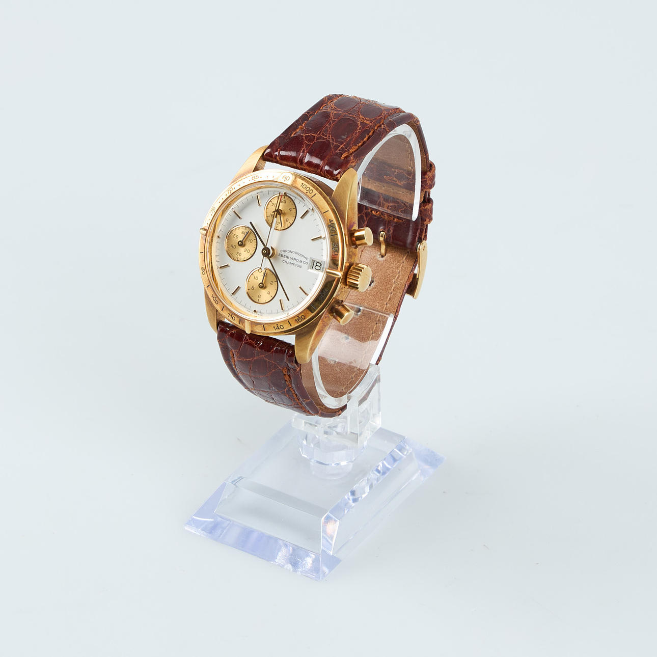 4353776. EBERHARD, Champion, 36,5 mm, chronograph, 18K gold, automatic, plastic crystal, 1990s.