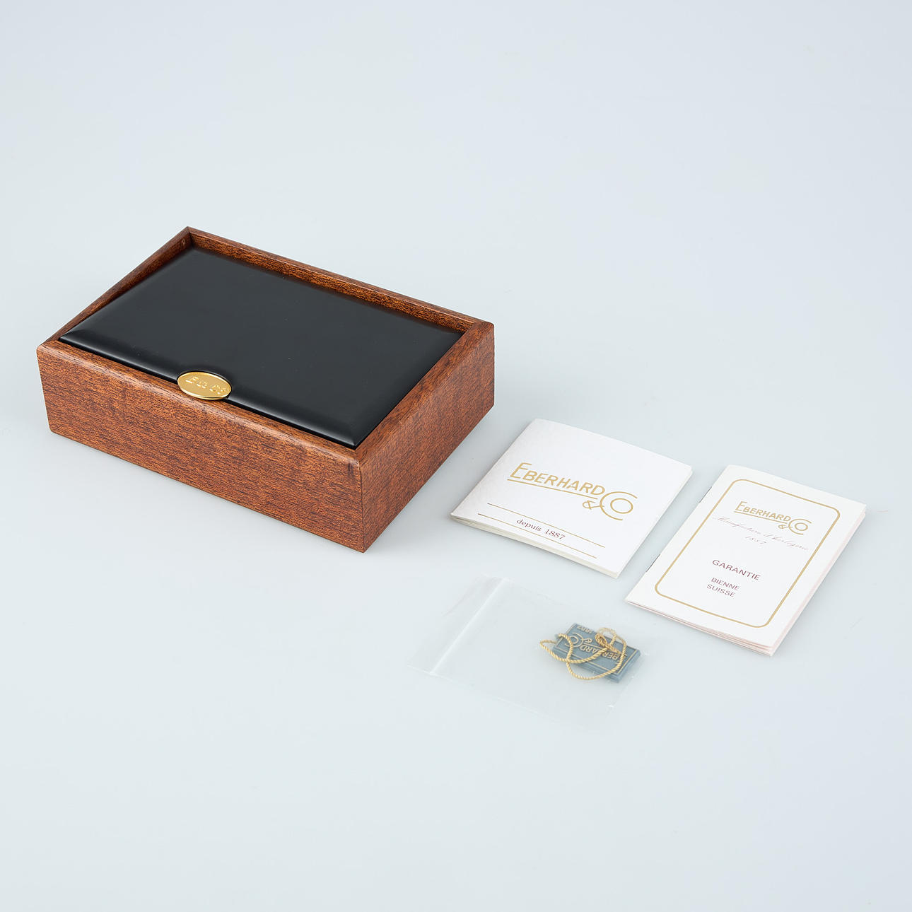 Eberhard leather strap and buckle. Reference number 30132 - C, serial number 4029026-1148, date. Warranty, box.