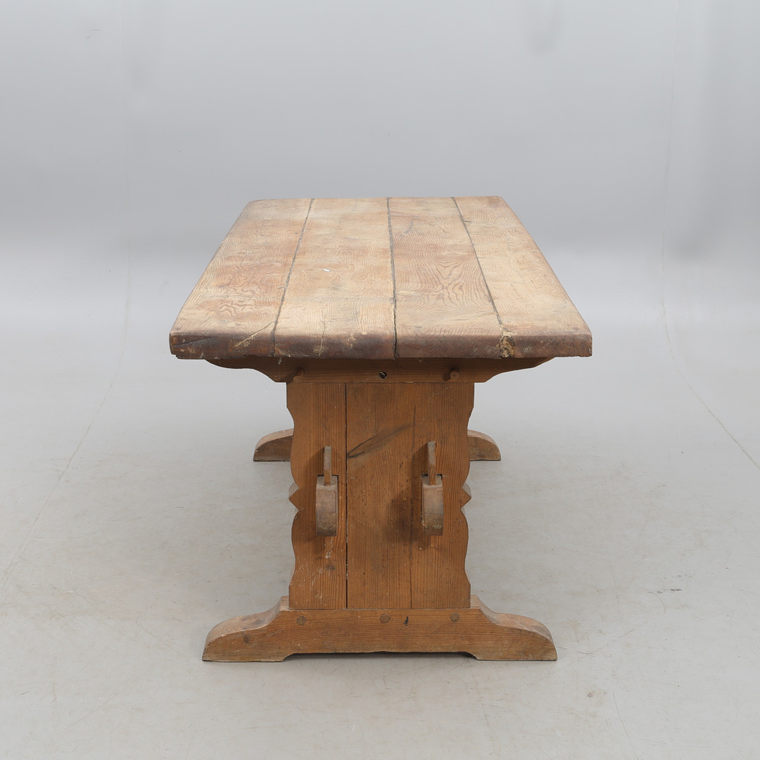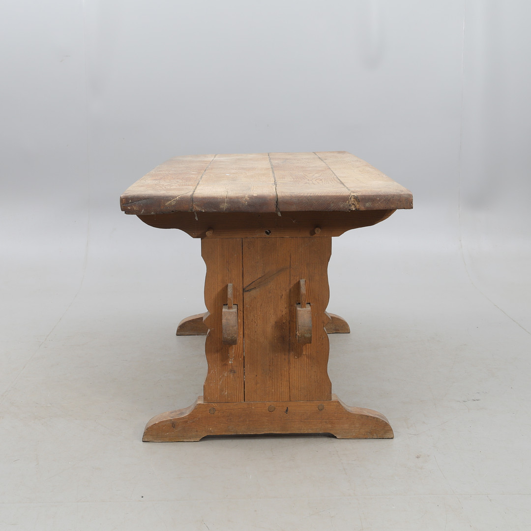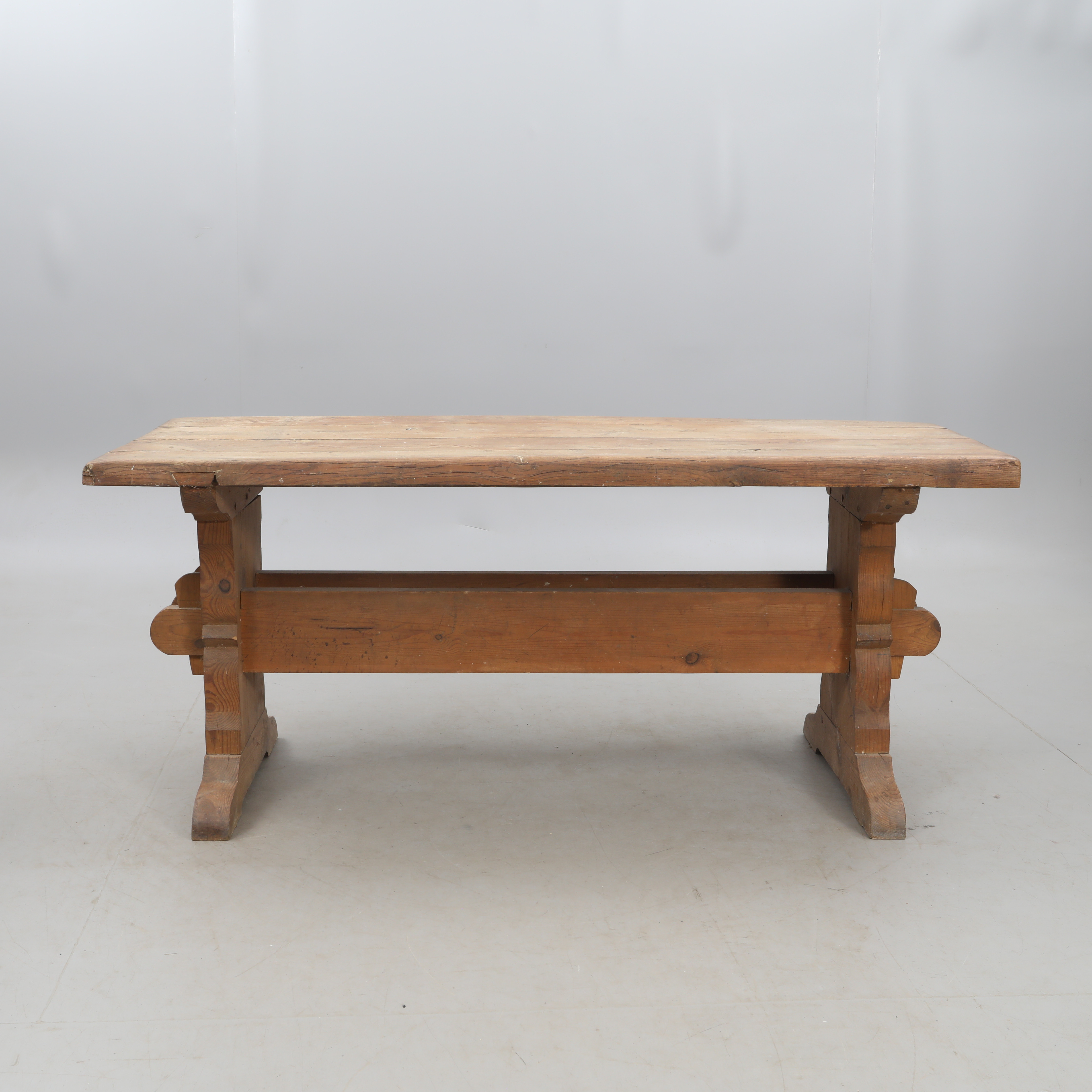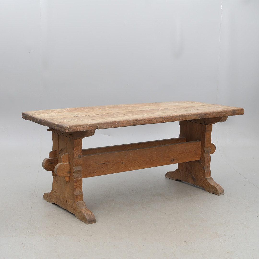 4353783. A wooden trestle table, pine.