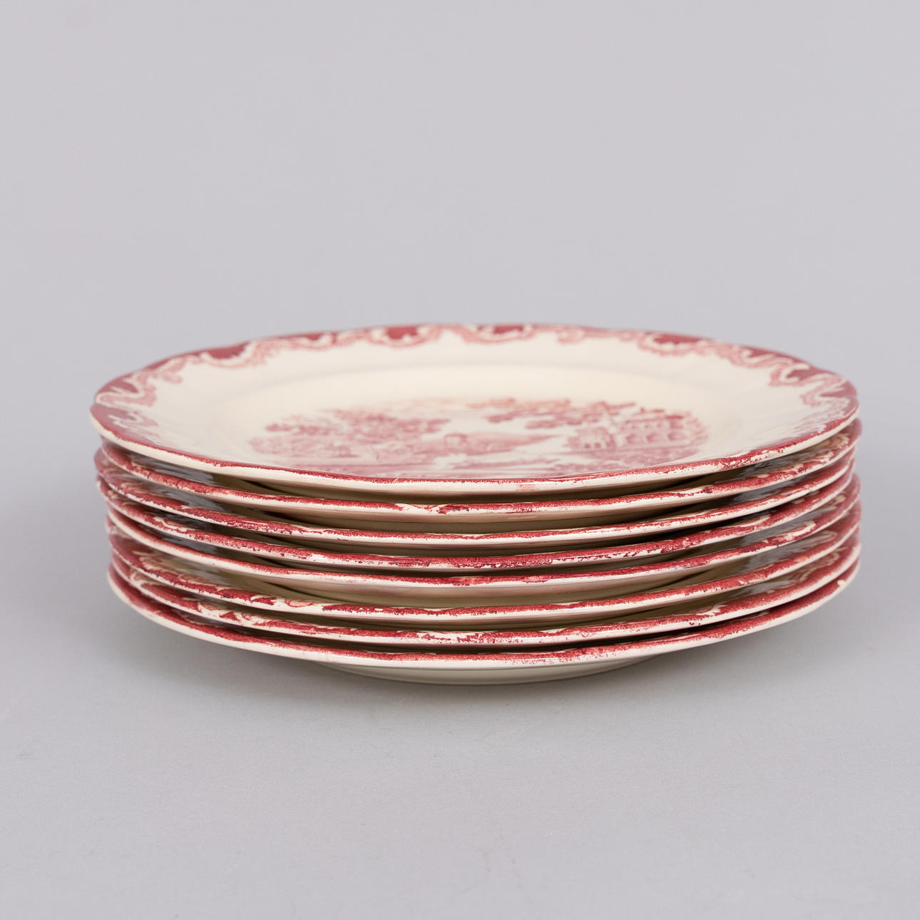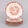 Two plates with wear, discolouration and cracking of glaze, other parts with handling traces.