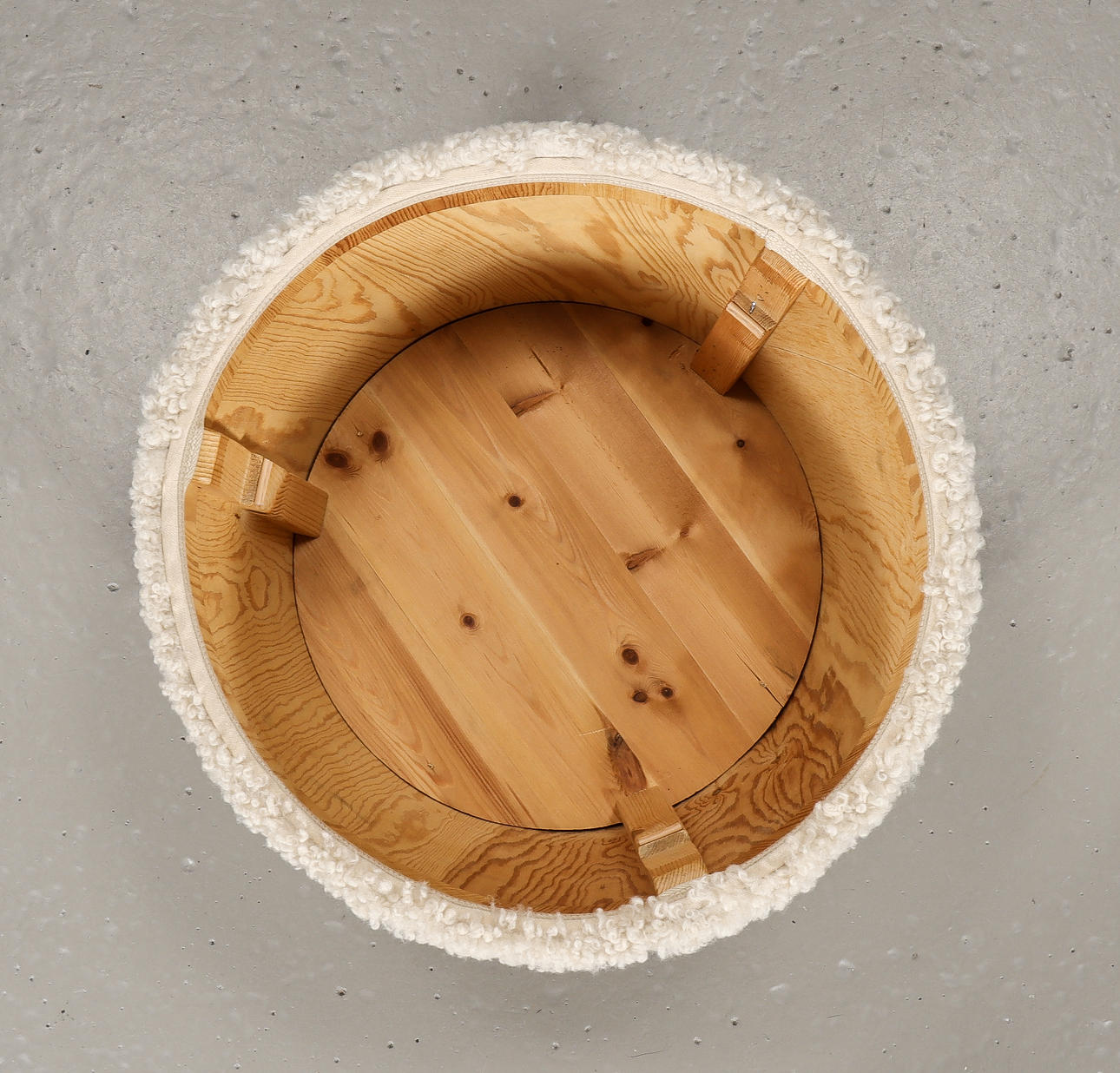 Newly dressed with light sheepskin. Interior with sewing box and storage.