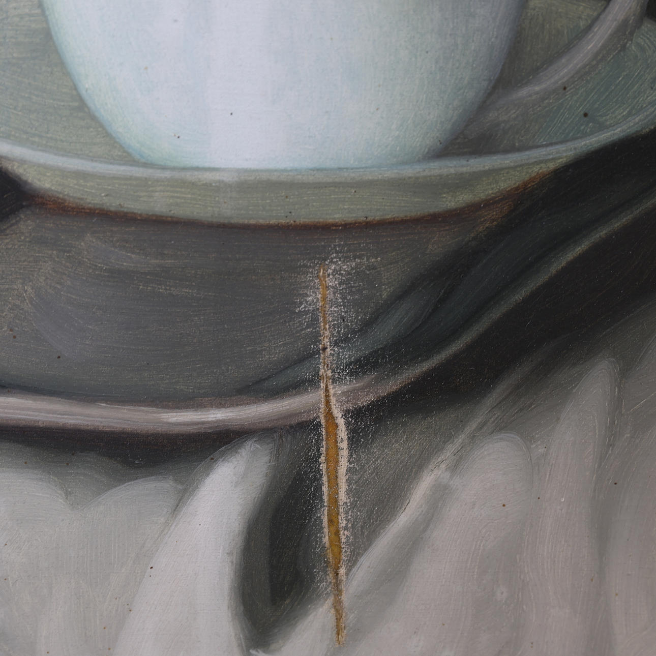 Tearing of canvas and loss of frame.