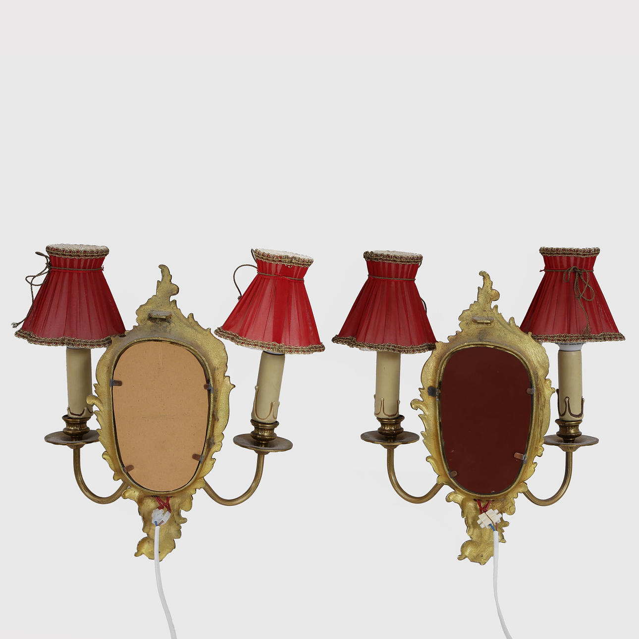 4354504. MIRROR CHANDELIERS, BRASS, ROCOCO STYLE, 1940S/1950S.