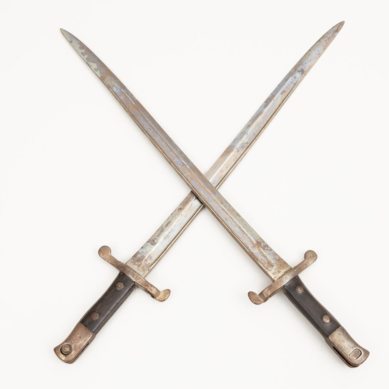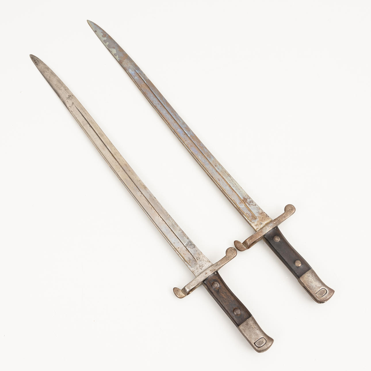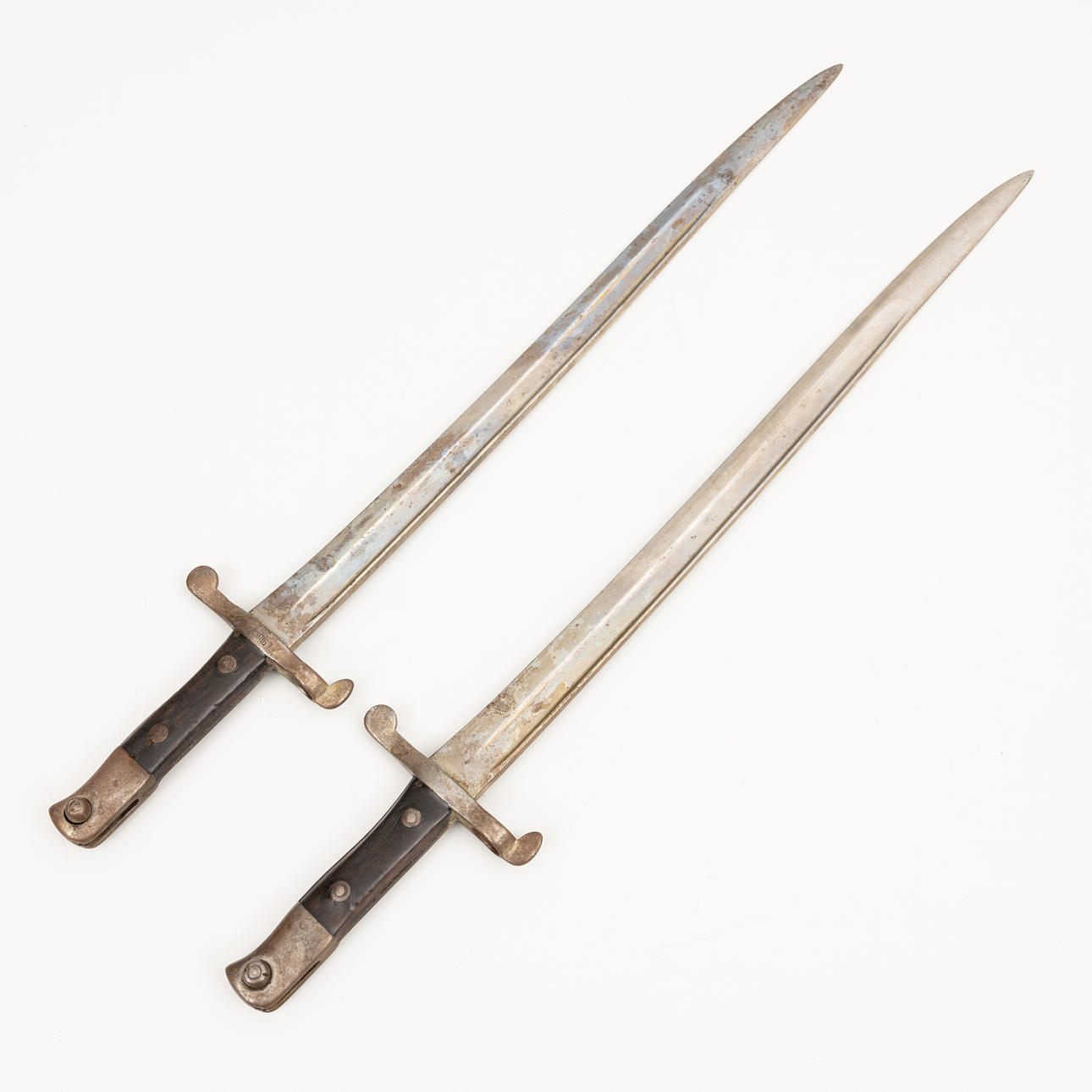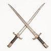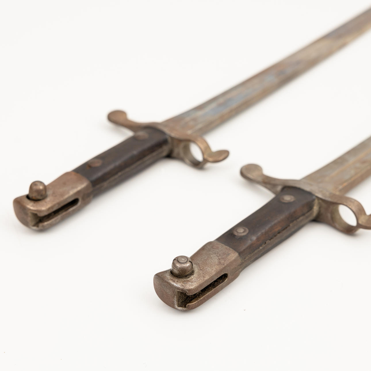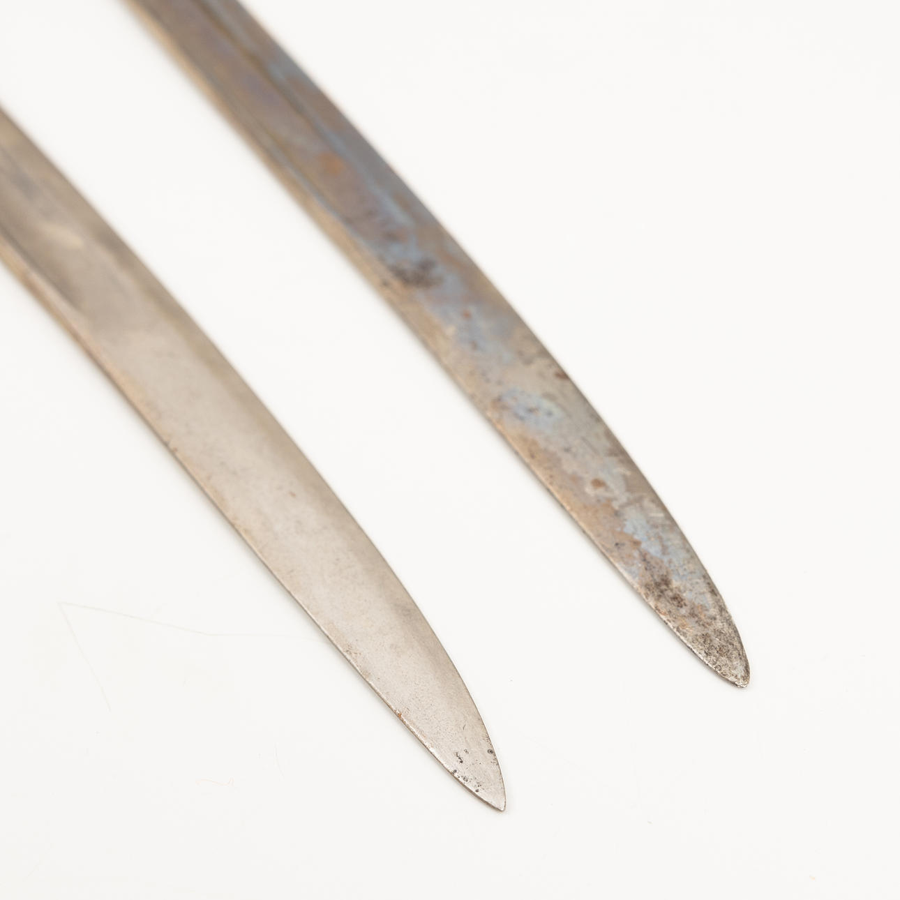 Steel bracket with rolling plates made of wood, single-edged blade with flat back, length 47 cm, total length approx. 59.5 and 60 cm respectively.