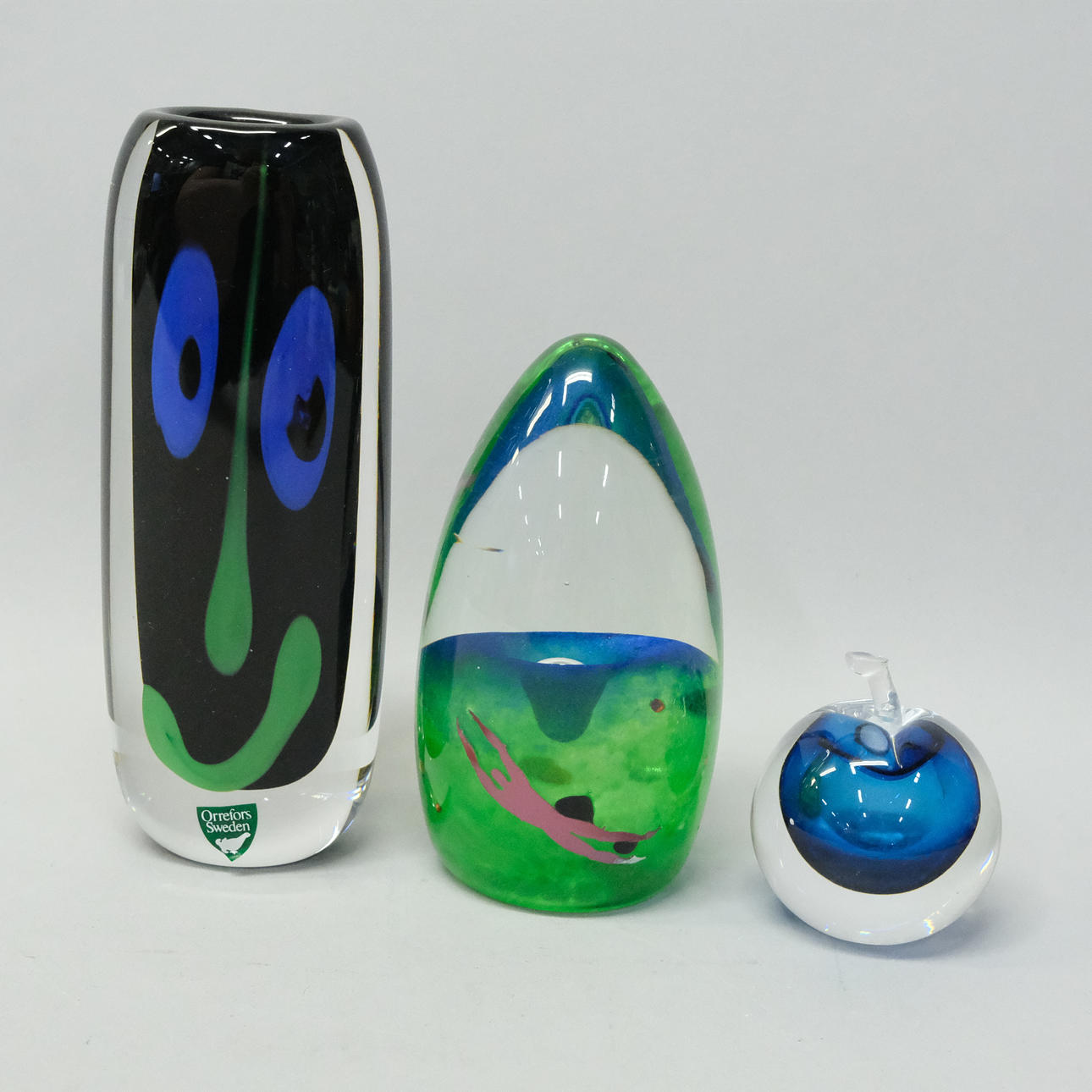 Vicke Lindstrand, Kosta, bottle in the shape of apple, height 6cm, marked Kosta.