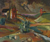4354656. OIDENTIFIERAD KONSTNÄR. Landscape with mill, oil on panel, signed K. Erixon.