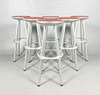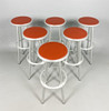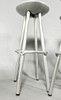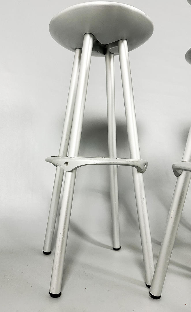 Bar stools, frame and footrests in cast aluminium. Leather seat.