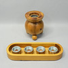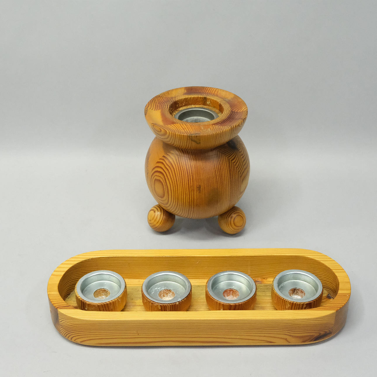Ball candlestick, height 20cm, diameter 15cm and Advent candlestick, length 40cm, height 5,5cm, width 14cm.