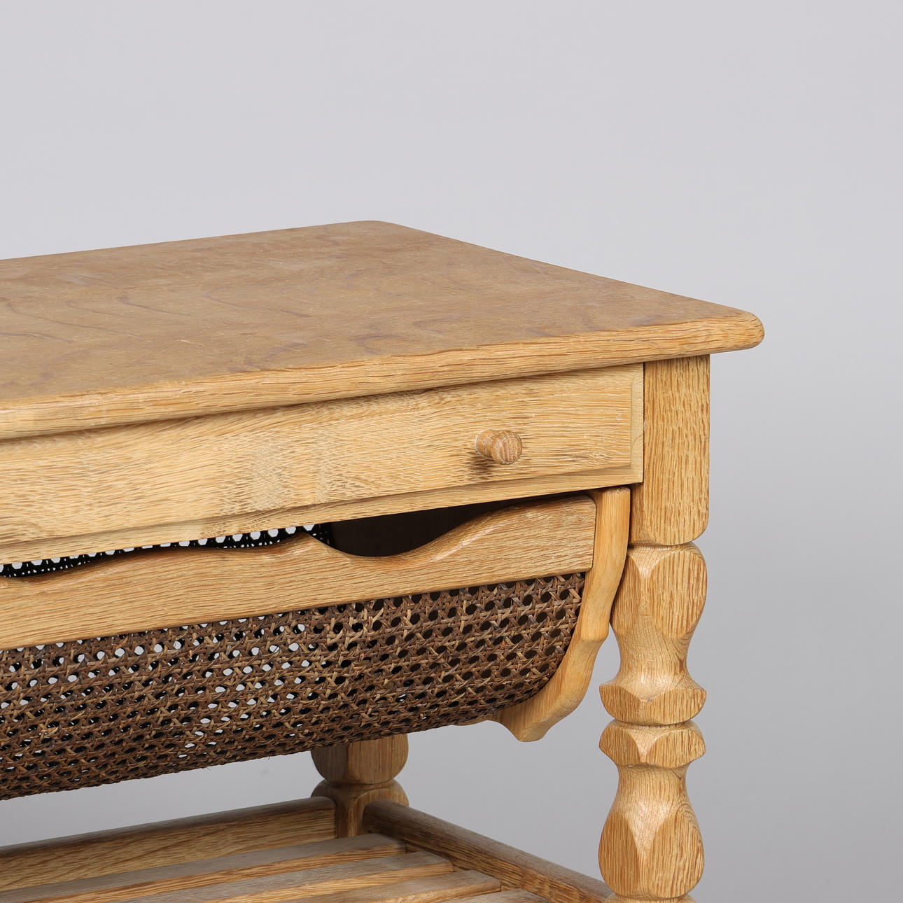 4355012. Sewing table, Henry Kjærnulf style of solid oak. Denmark.