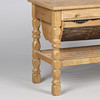 Sewing table, Henry Kjærnulf style of solid oak, drawer with room division and underlying shelf, as well as wicker basket. H. 56 x 74 x 40 cm.