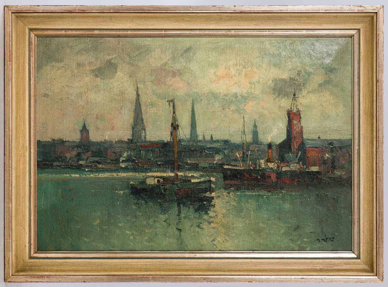 Otto Wild (1898-1971), Port of Hamburg, oil on canvas, signed, ca. 58 x 84, with frame 72 x 99 cm.