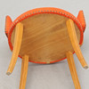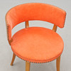 Arched, partially upholstered back tray and turned legs made of beech. Round upholstered seat. Decor of pearl nails. Width 54,5, depth 50, back height 64, seat height 40 cm.