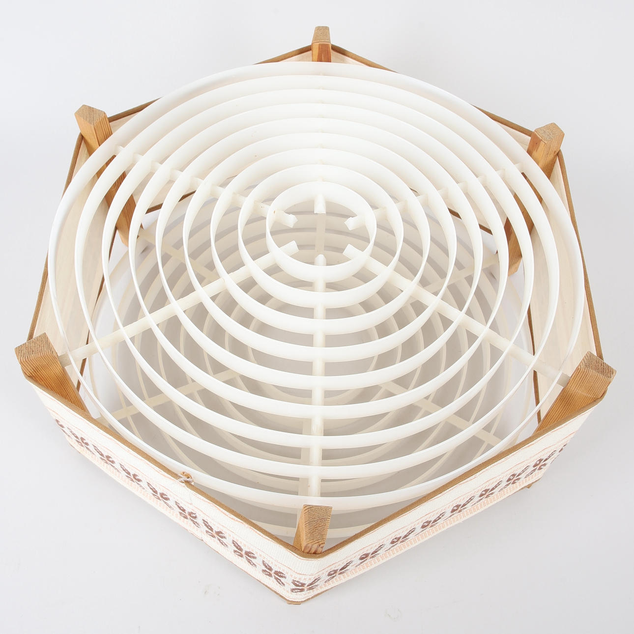 4355471. A lamp shade, pine, textile and plastic, 1960/70s.