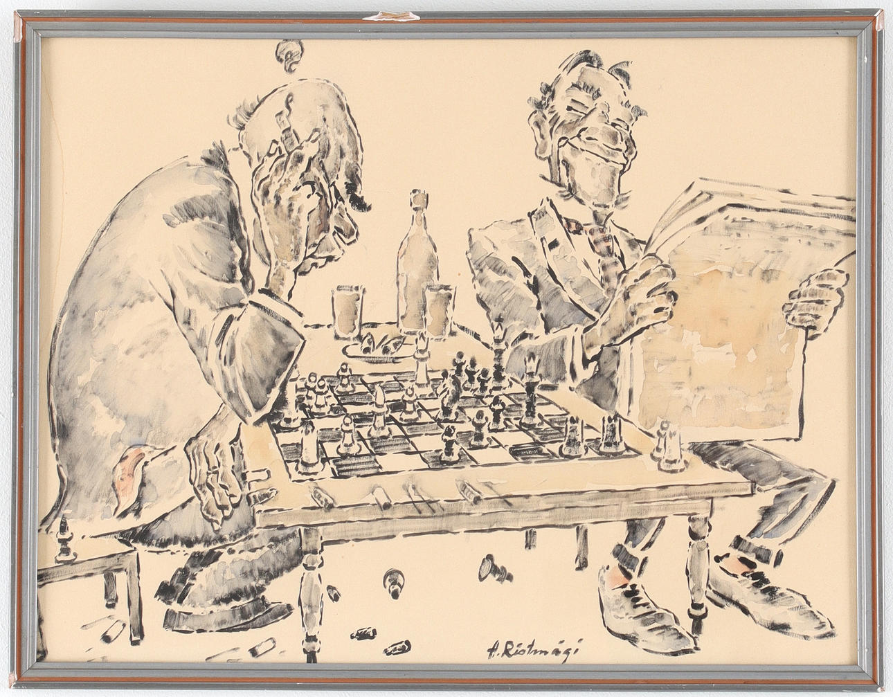 ALEKSANDER RISTMÄGI. Chess player, ink, signed.