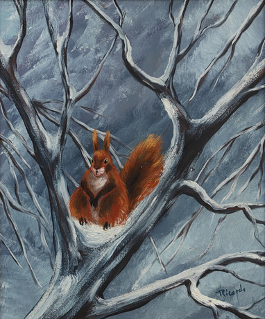 4355978. SUNE JOHANSSON. (Blankaholm) Oil on canvas with montage of squirrel, dated 02.