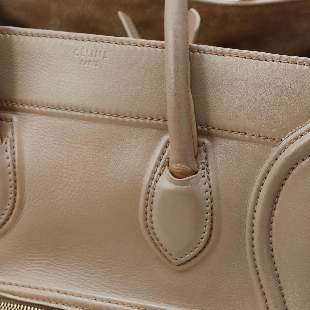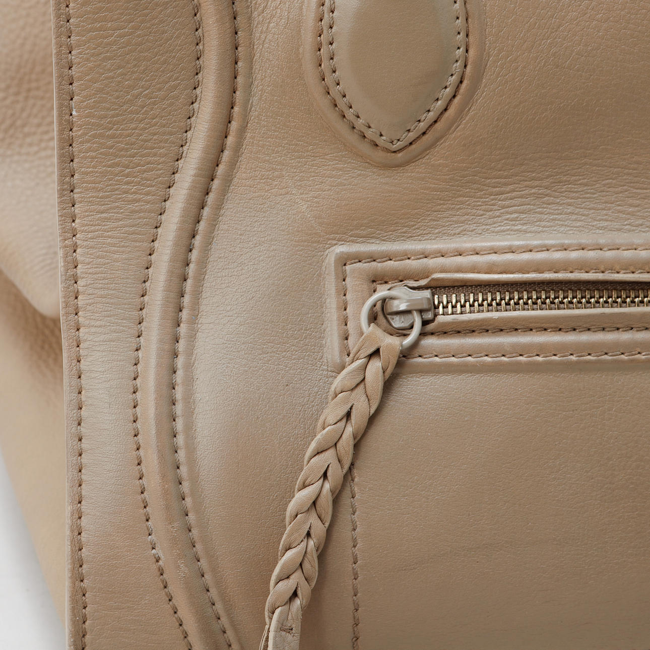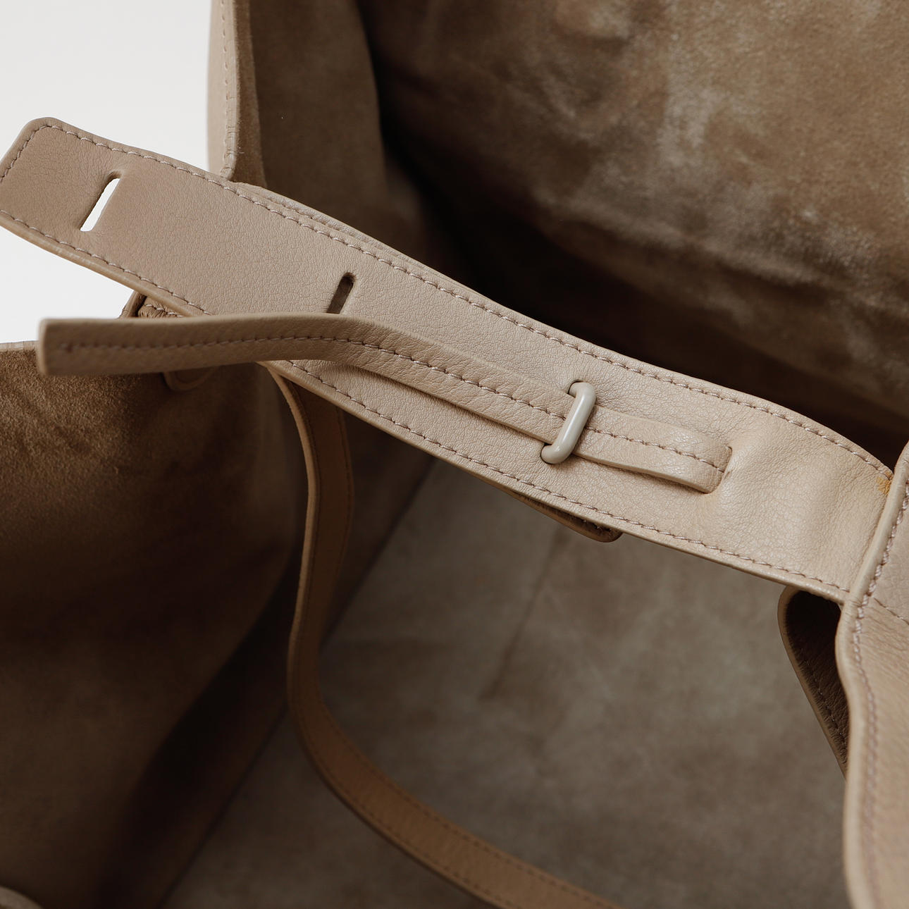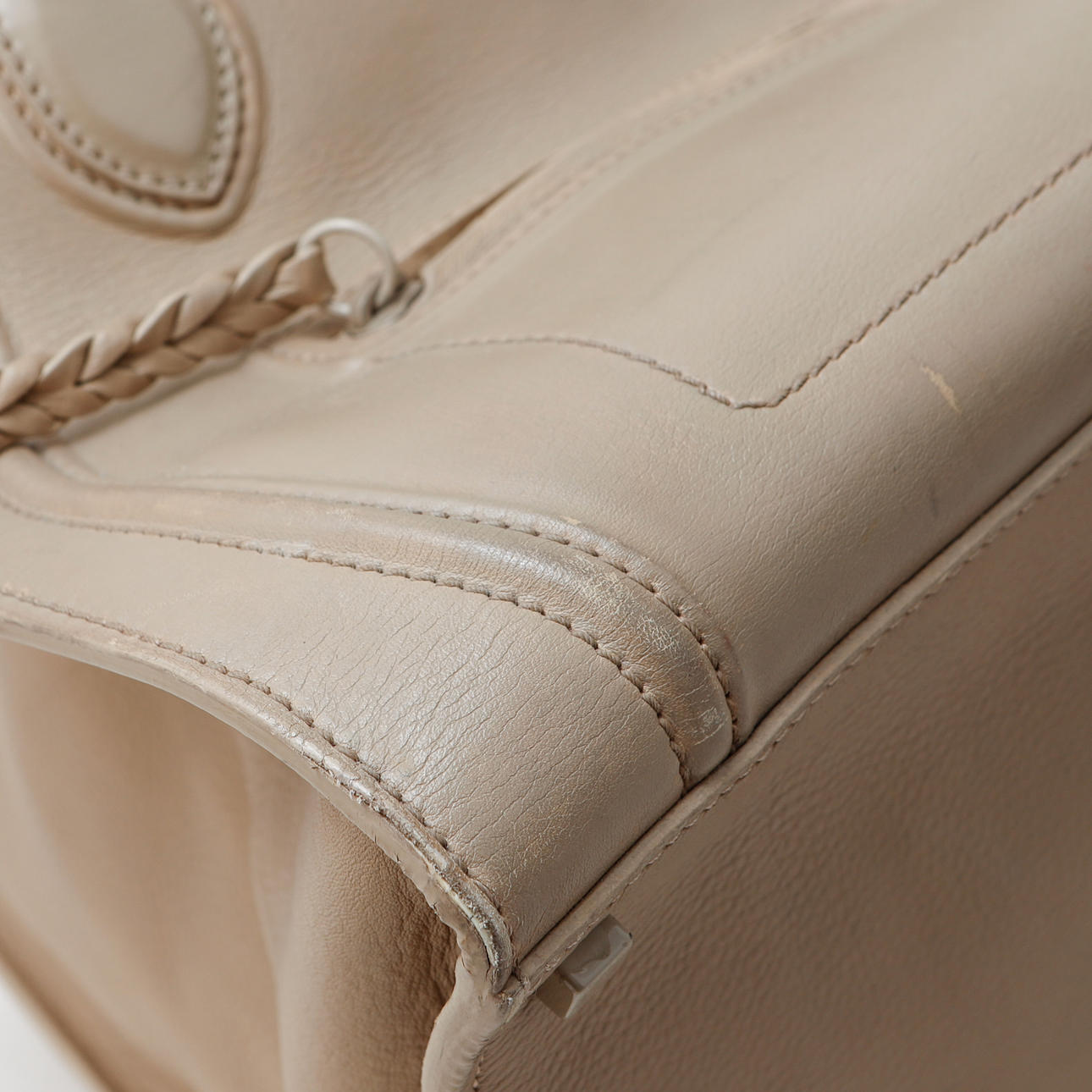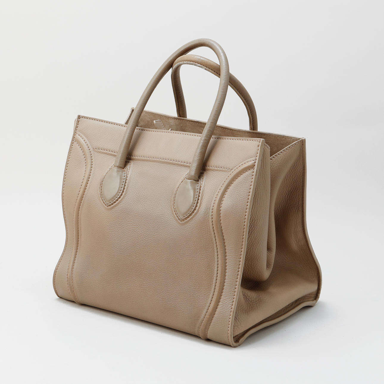 Leather in beige tone. 29 x 23 x 28.