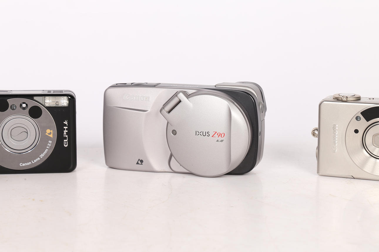 Four Canon cameras to include a IXUS (2303826), IXUS II (3030492), IXUS III (7901303), IXUS Z90 (2001776) and ELPH Jr. (1778245). (5).
