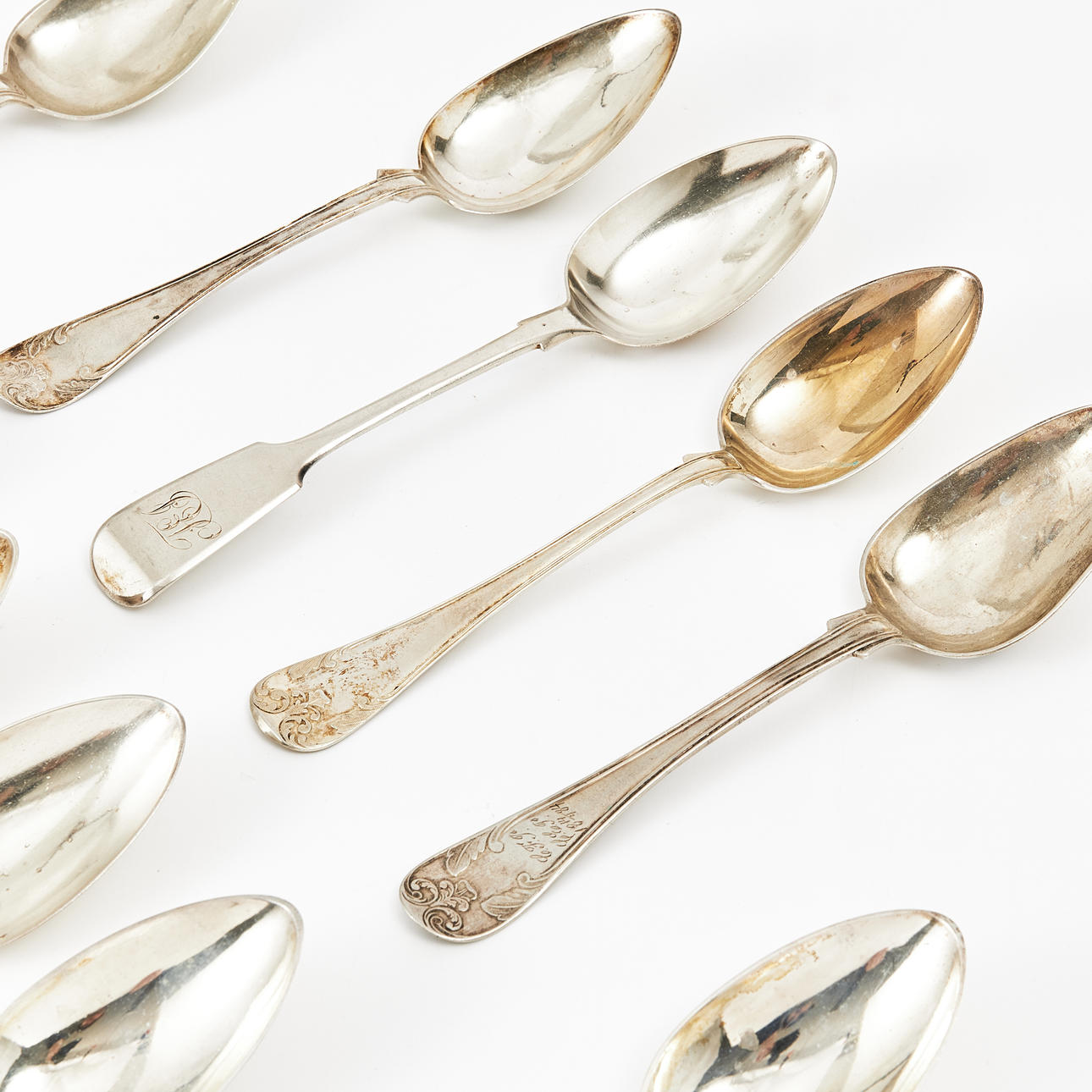 DINING SPOONS, 30 pcs., silver, mostly Sweden model old french.