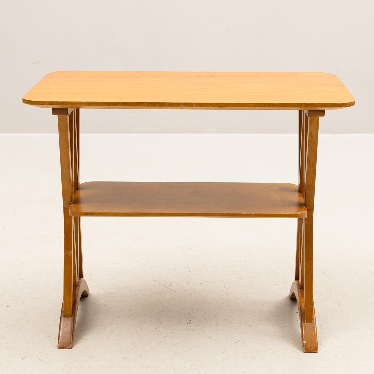 4356490. A 1940s-era bedside table/newspaper table, boned wood.