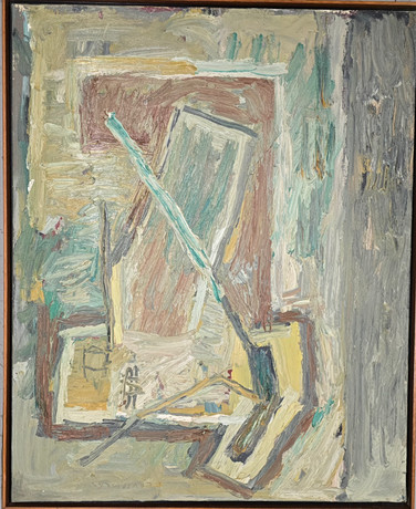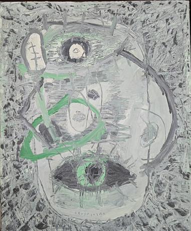 JOAN CRUSPINERA. ABSTRACTION COUPLE OF ROBOTS. OIL ON CANVAS.