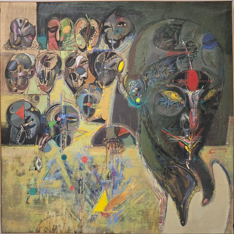 4356568. JOAN CRUSPINERA. ABSTRACTION COUPLE OF ROBOTS. OIL ON CANVAS.