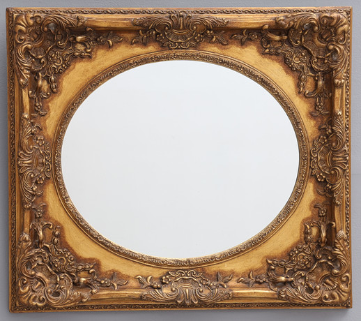 Mirror dimensions 32,5x15 cm, frame dimensions 60x27 cm.