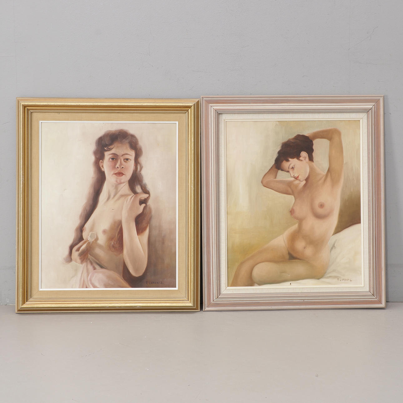 4358003. FRANS LORENTZ. Nude studies, 2 pieces, oils on canvas, signed.