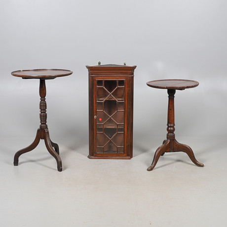 TWO MAHOGANY TRIPOD TABLES AND A SMALL HAN…