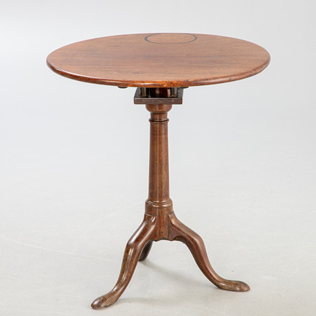 Both with tilt tops and a turned column, the mahogany table with rectangular top (Height 71.5cm x Width 59cm x Depth 42cm), the oak table with round top (Height 72cm x Diameter 55cm). (2).