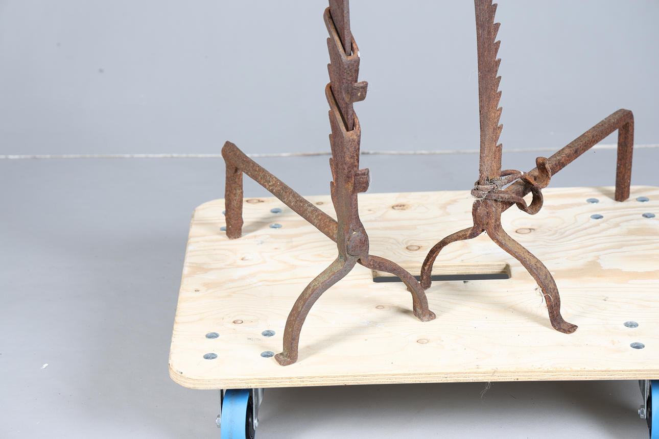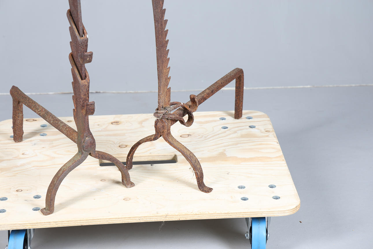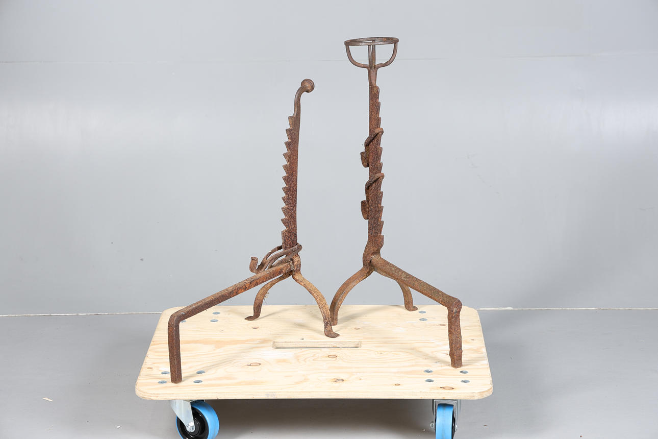 TWO 19TH CENTURY WROUGHT IRON ANDIRONS (2).