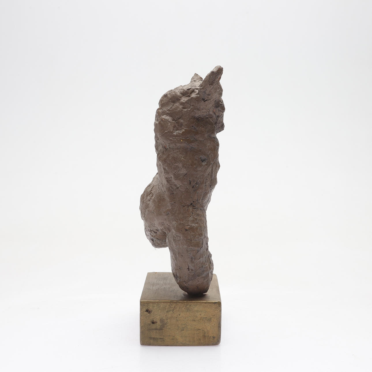 Mounted on gold painted wooden plinth. Height approx. 24, length 11, width 7cm.