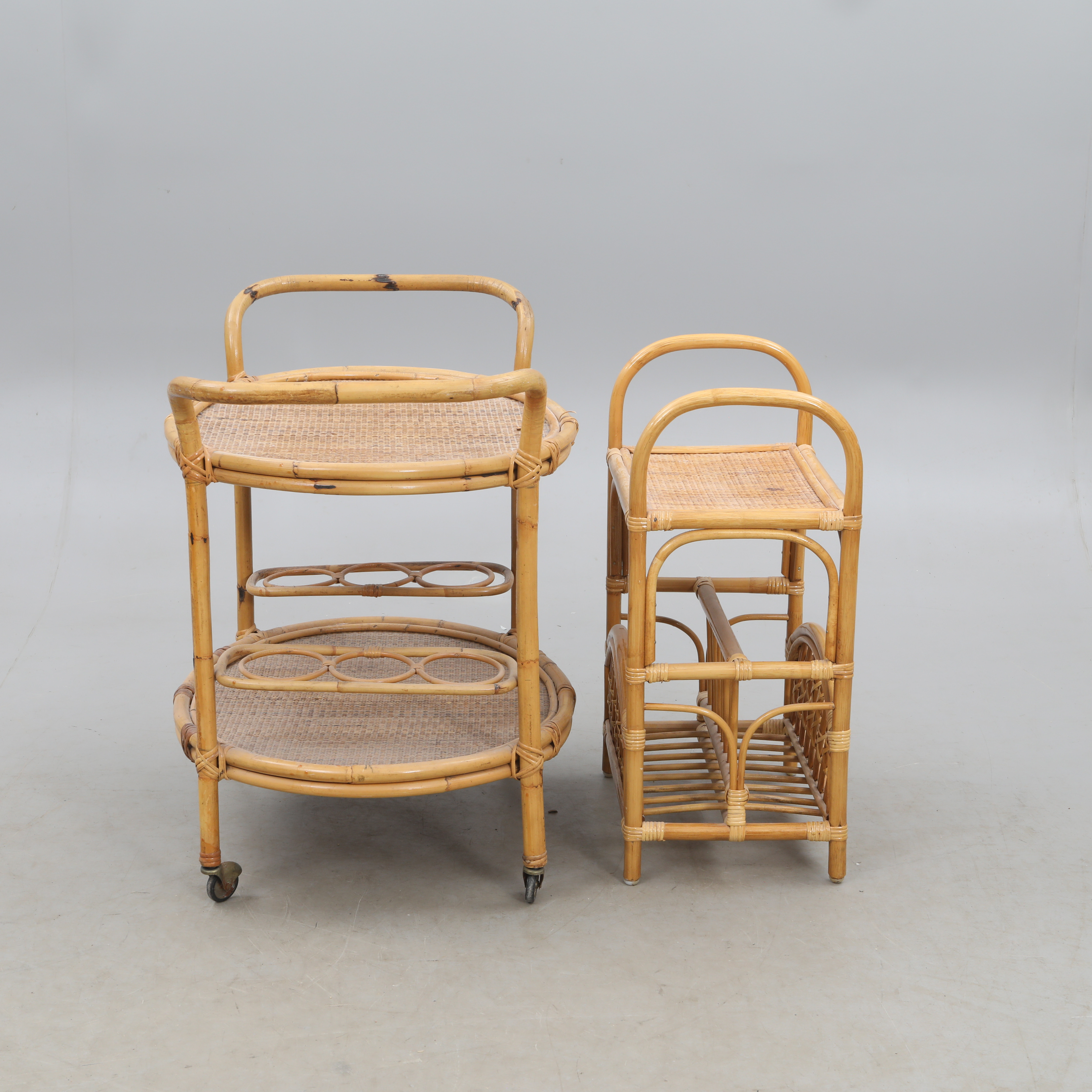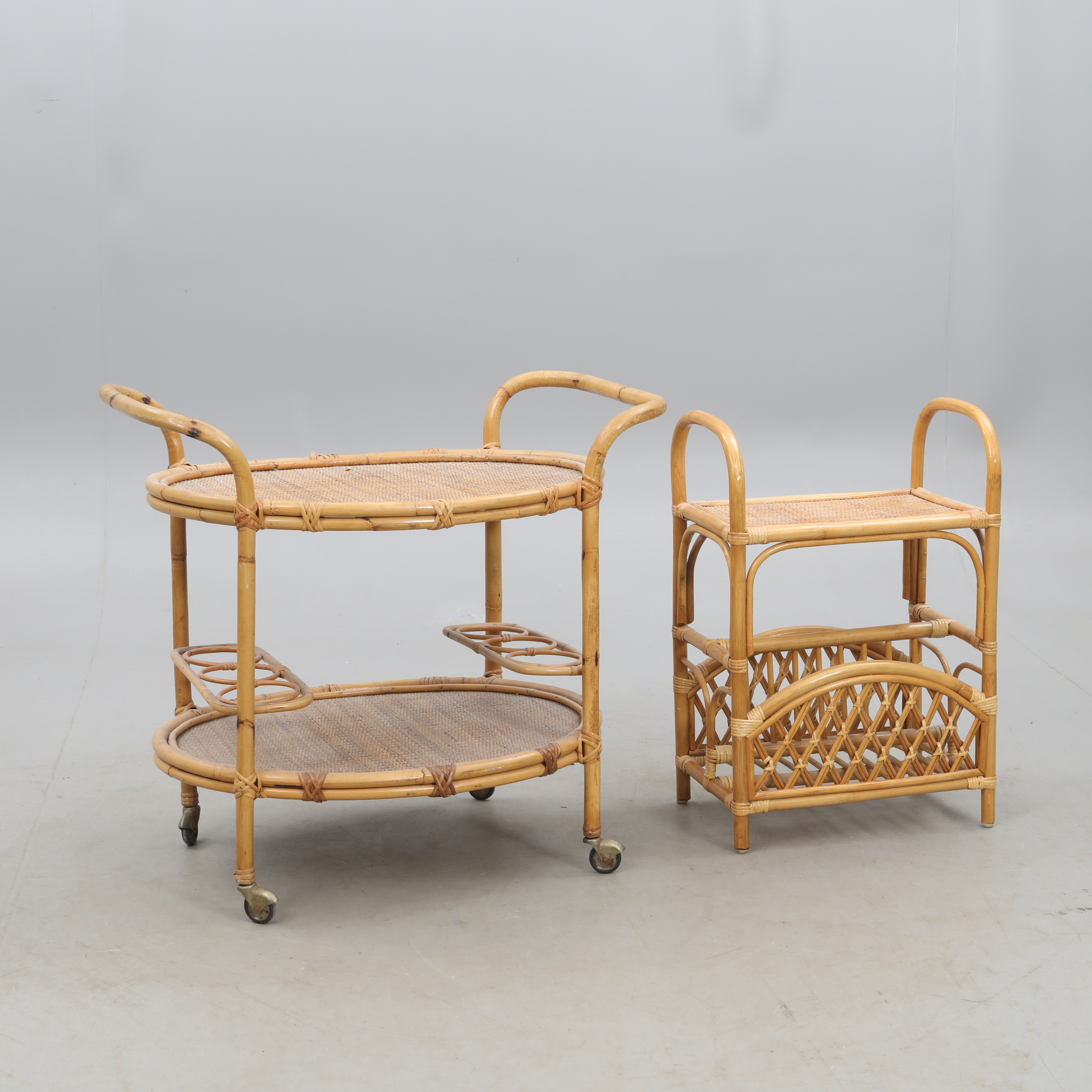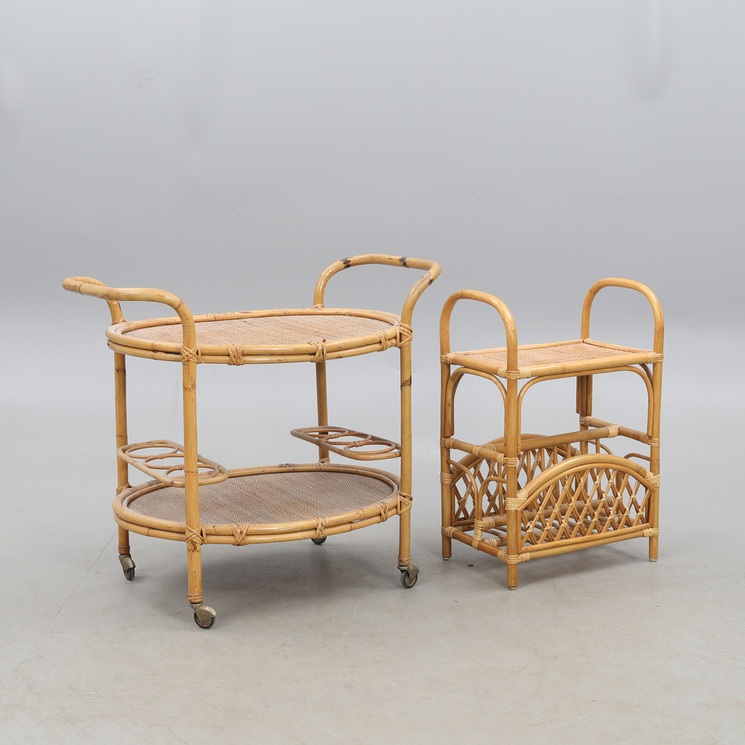 4358396. BAR/SERVING TROLLEY and magazine rack, bamboo.