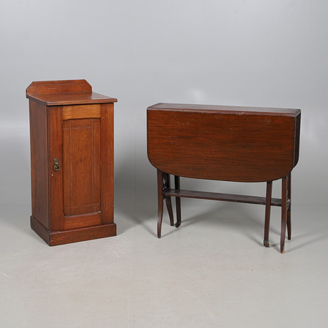 AN EDWARDIAN POT CUPBOARD AND A COMMODE STOOL.