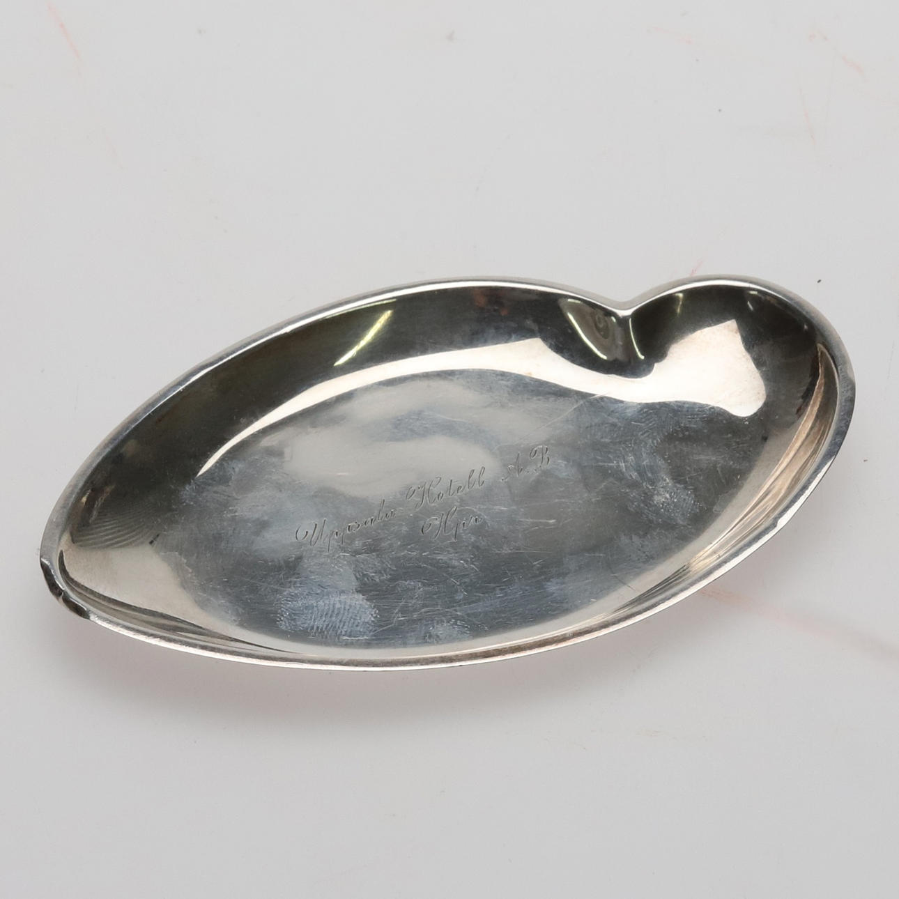 Silver platter CG Hallberg, from 1954. Length approx. 11 cm, width approx. 6,5 cm.