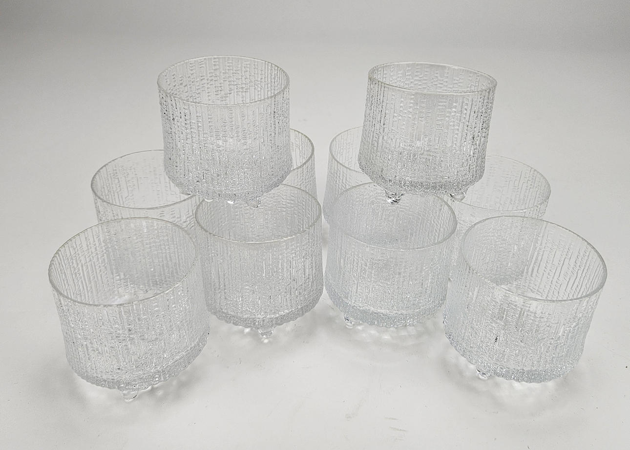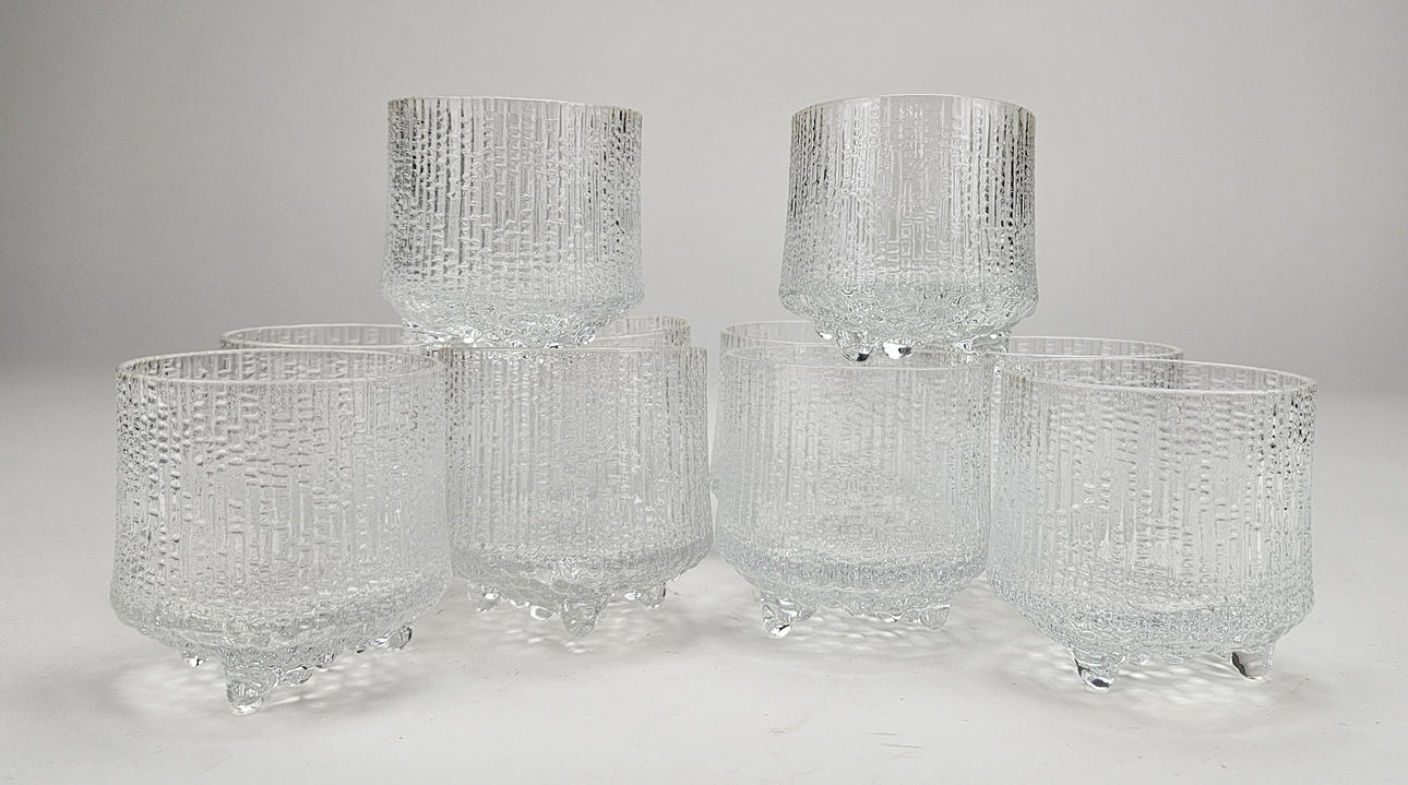 10 glass, “Ultima Thule”, height approx. 7 cm. 4 glasses, “Pallas”, height approx. 14 cm. 3 glasses, “Droppring”, height approx. 12 cm.