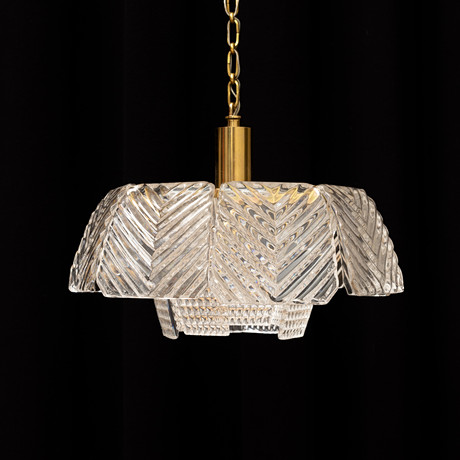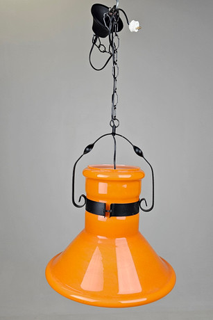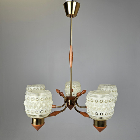 Metal frame, surrounded by glass rods, 6 light points, diameter approx. 45 cm.