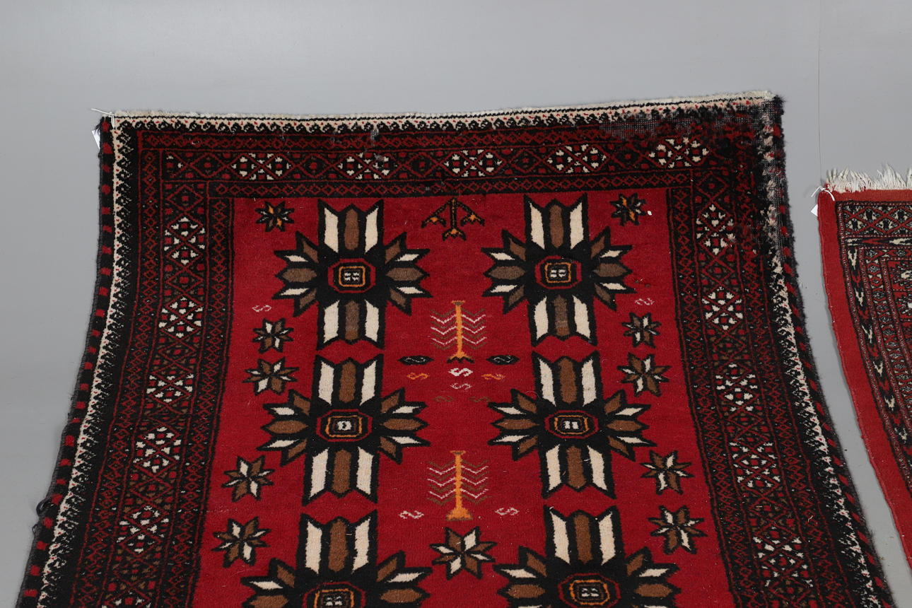 with two rows of gulls within multiple borders to a red ground, 152cm x 98cm; together with a further Middle Eastern rug, 180cm x 104.